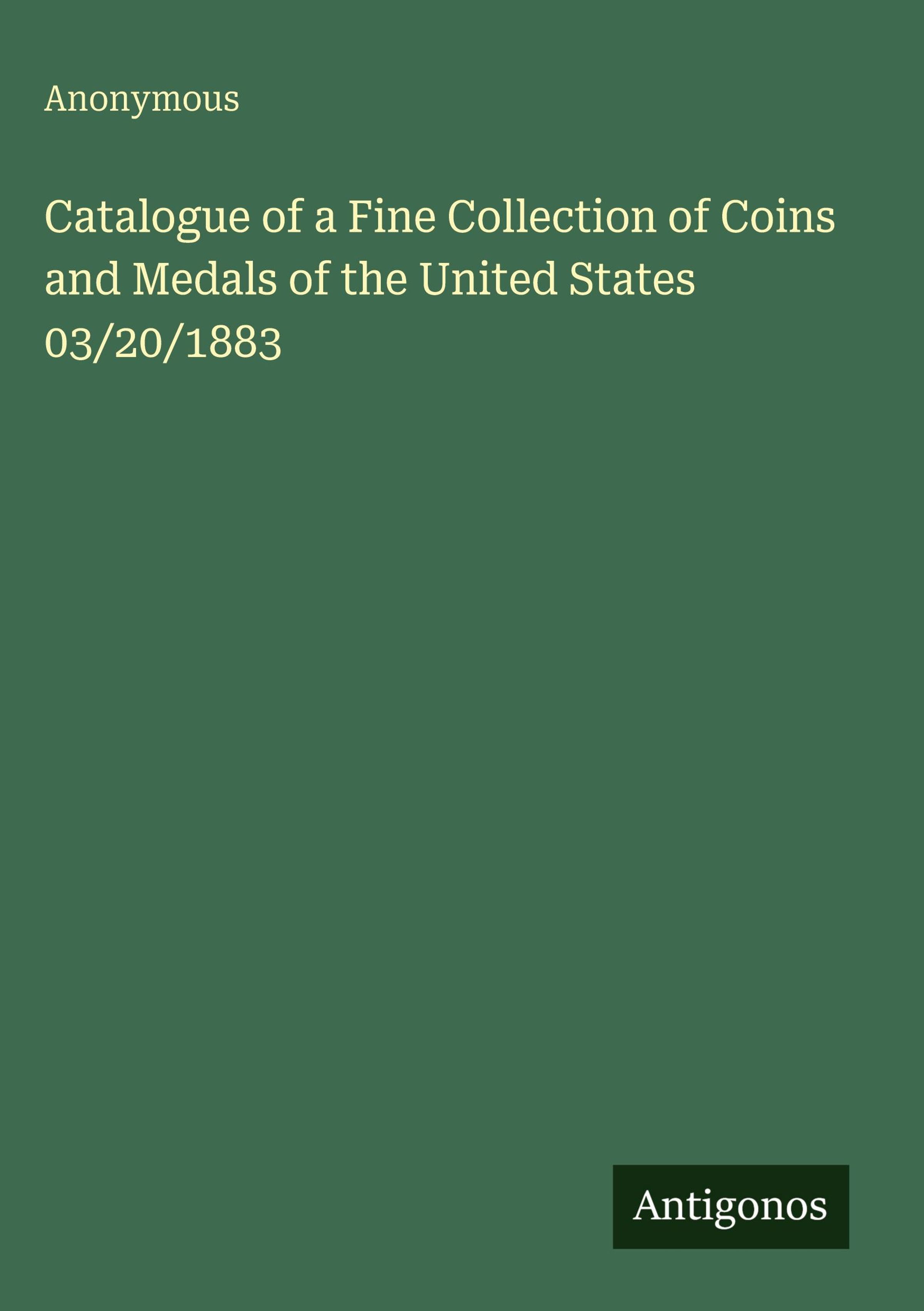 Anonymous: Catalogue of a Fine Collection of Coins and Medals of the United States 03/20/1883, Gebunden