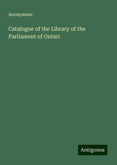 Anonymous: Catalogue of the Library of the Parliament of Ontari, Gebunden
