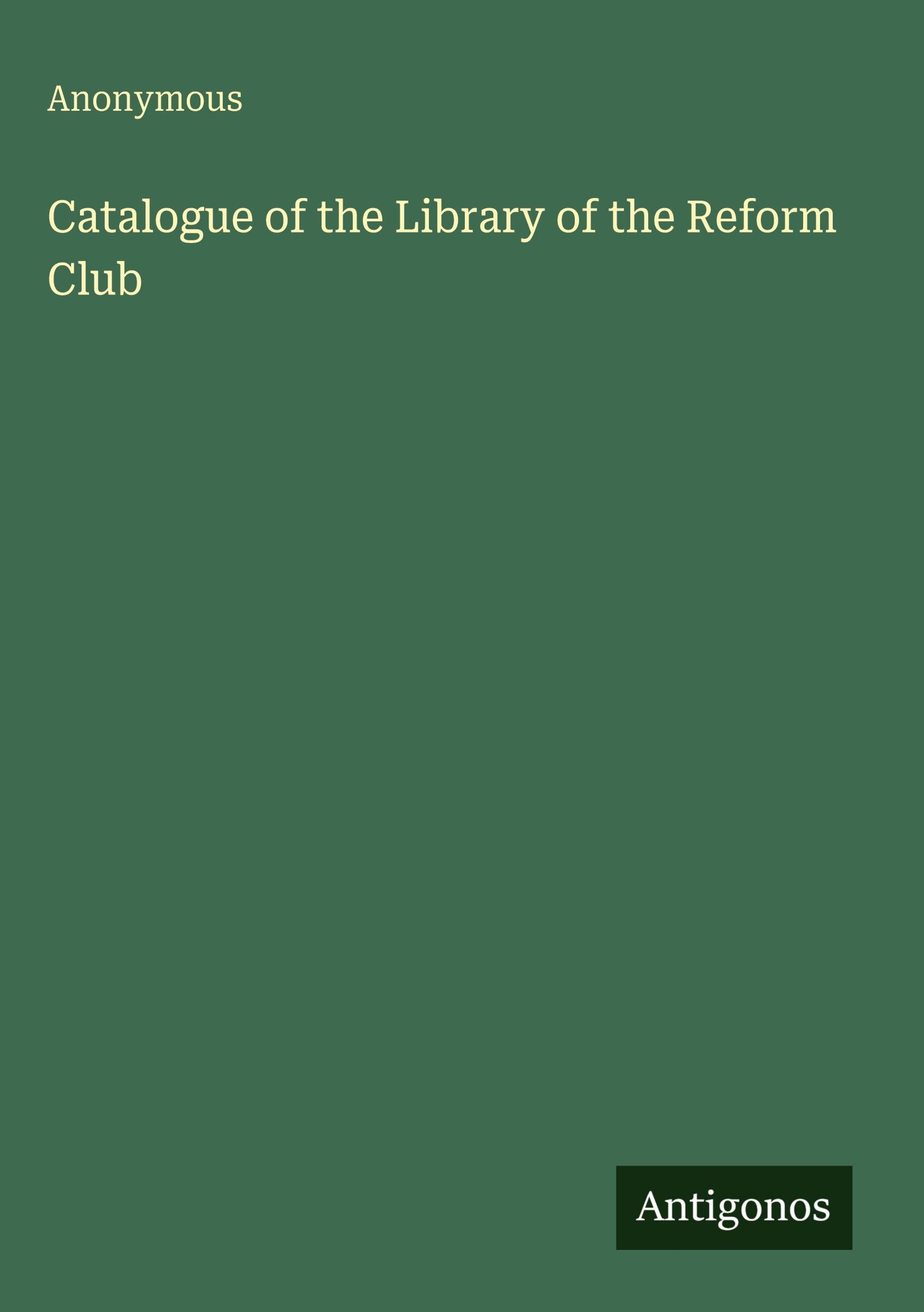 Anonymous: Catalogue of the Library of the Reform Club, Gebunden