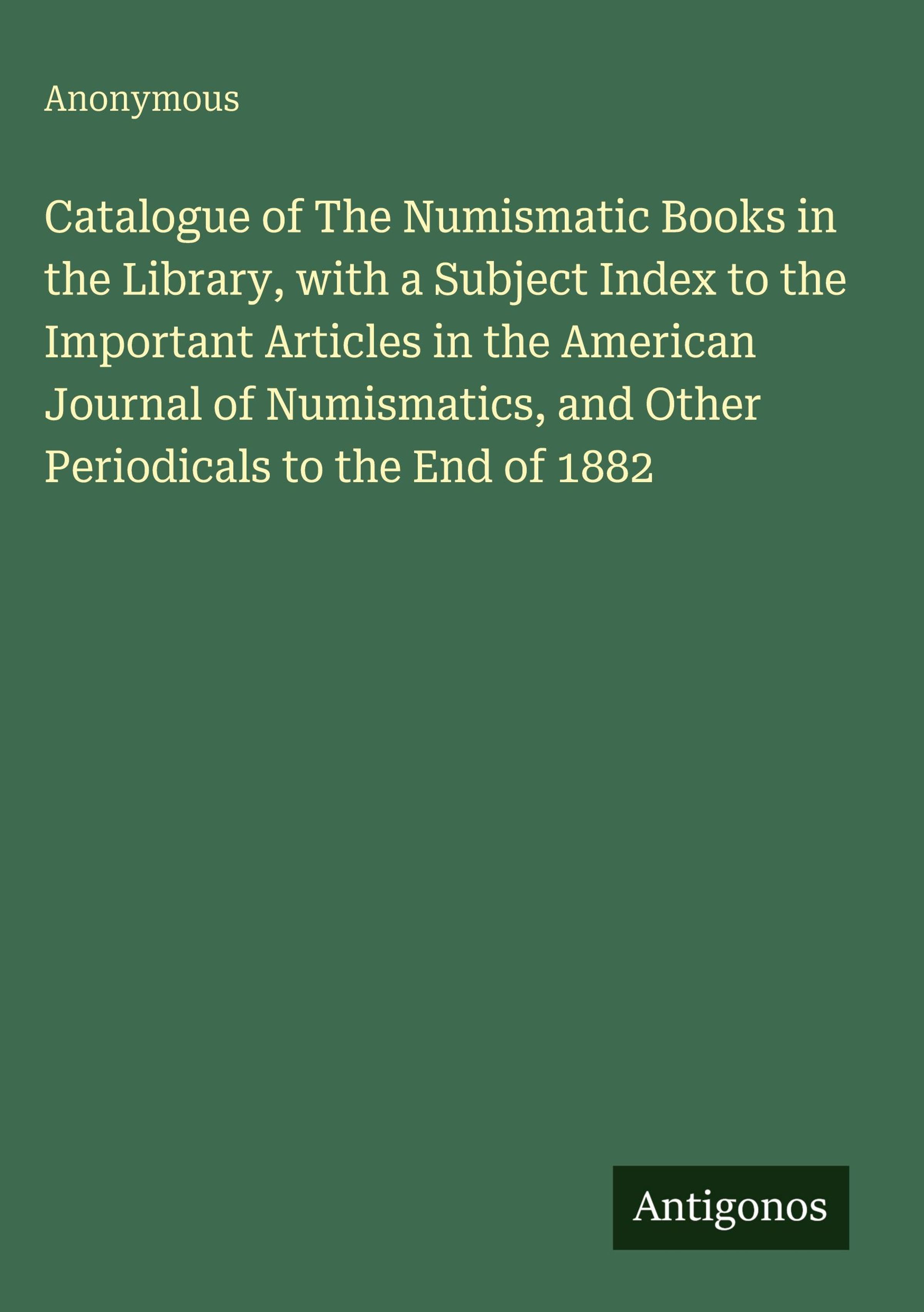 Catalogue of The Numismatic Books in the Library, with a Subject Index to the Important Articles in the American Journal of Numismatics, and Other Periodicals to the End of 1882