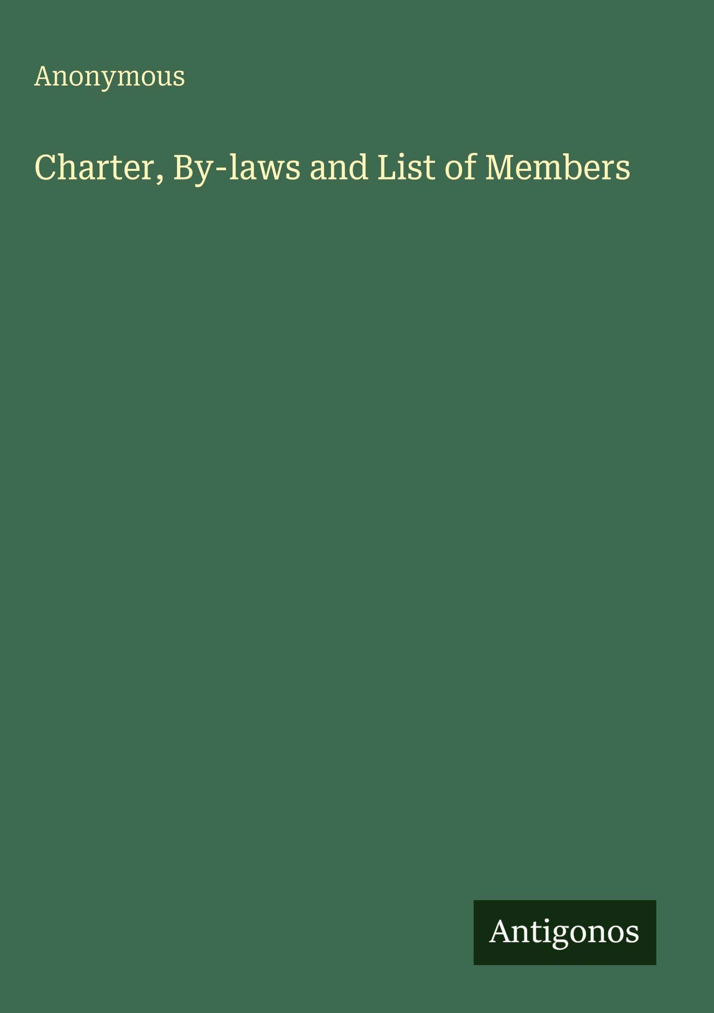 Anonymous: Charter, By-laws and List of Members, Gebunden
