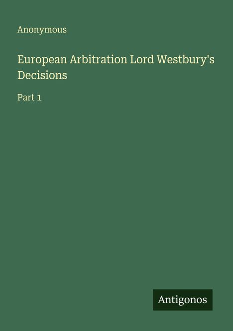 Anonymous: European Arbitration Lord Westbury's Decisions, Kartoniert / Broschiert
