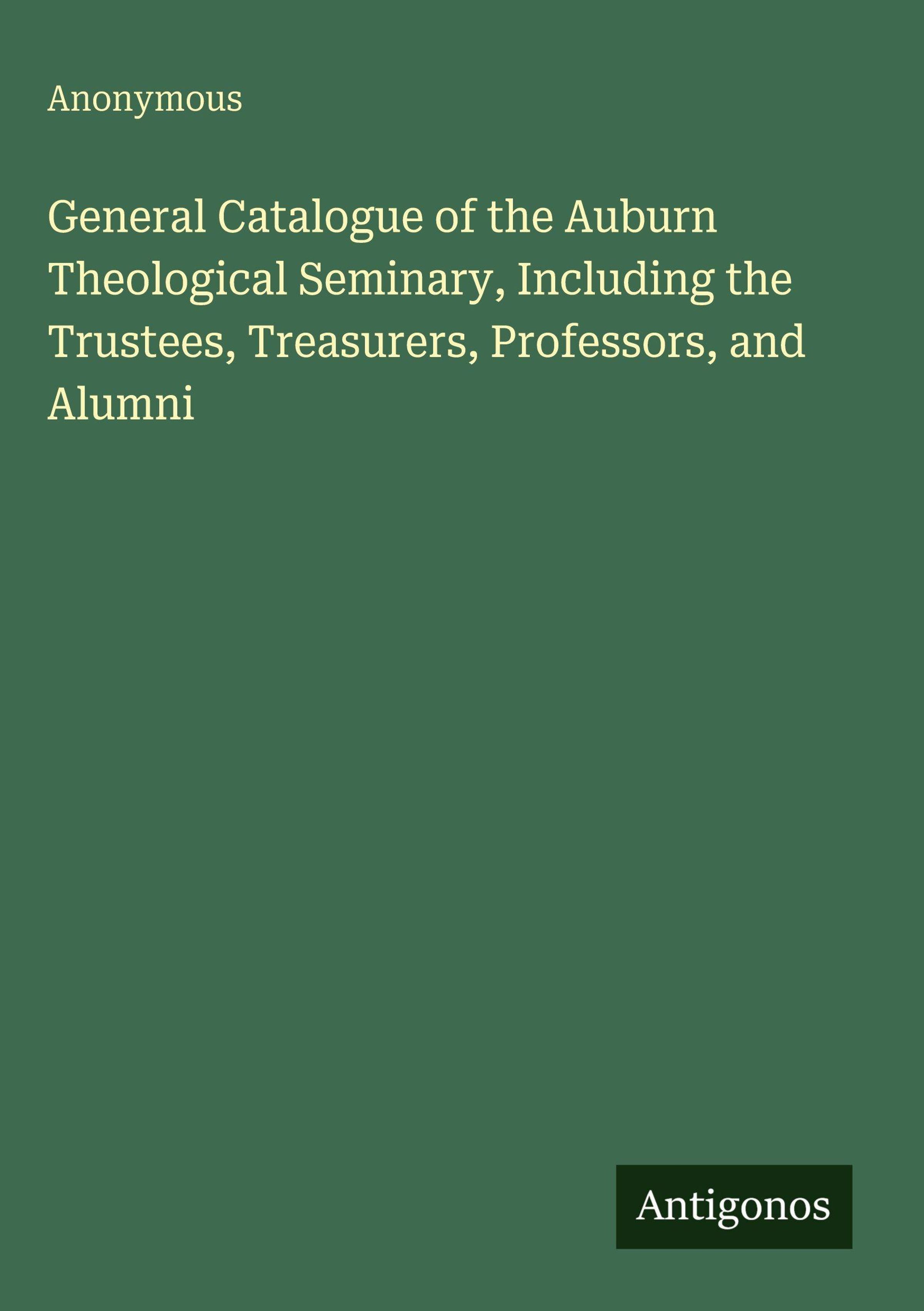 Anonymous: General Catalogue of the Auburn Theological Seminary, Including the Trustees, Treasurers, Professors,..., Gebunden