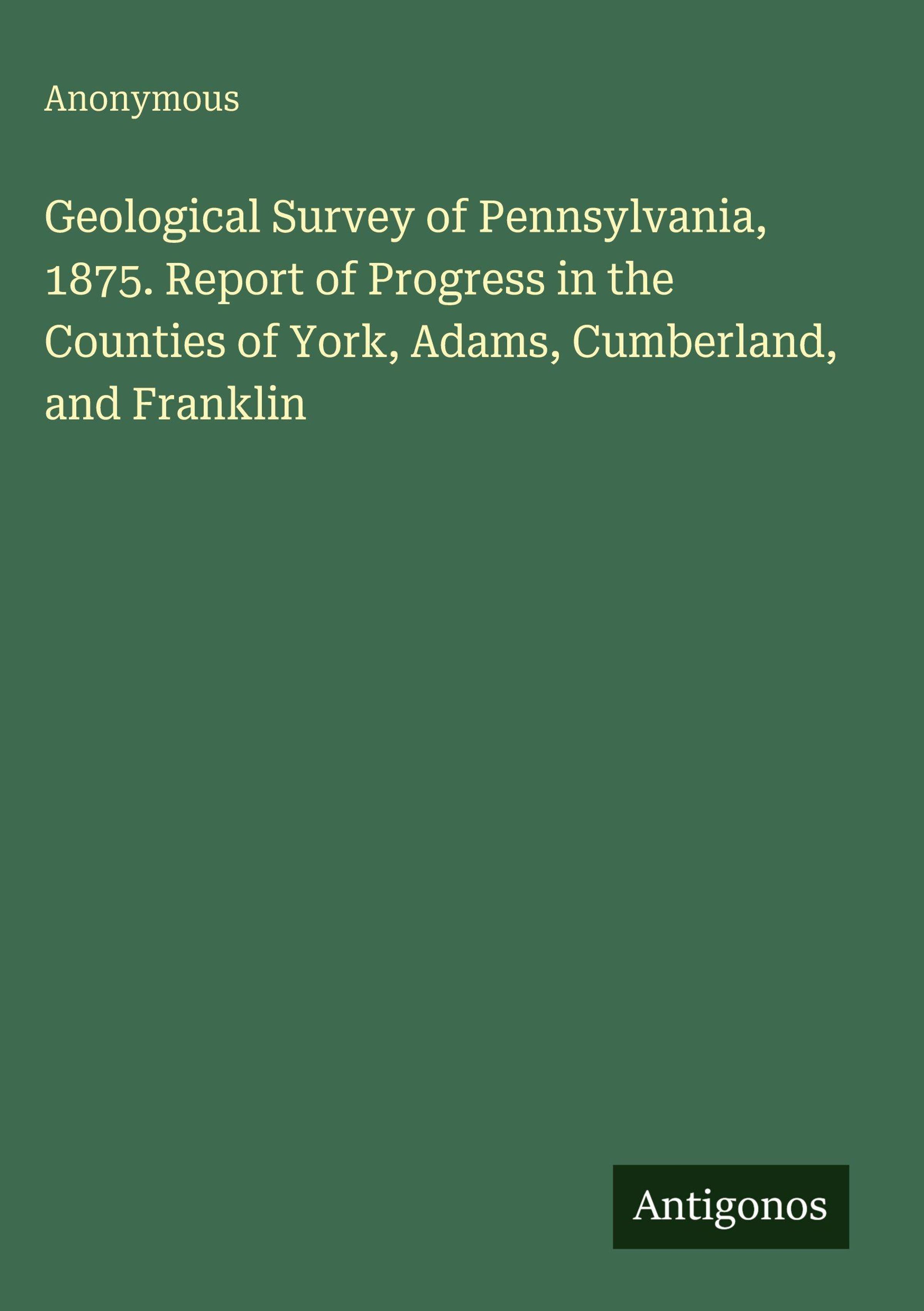 Anonymous: Geological Survey of Pennsylvania, 1875. Report of Progress in the Counties of York, Adams,..., Gebunden