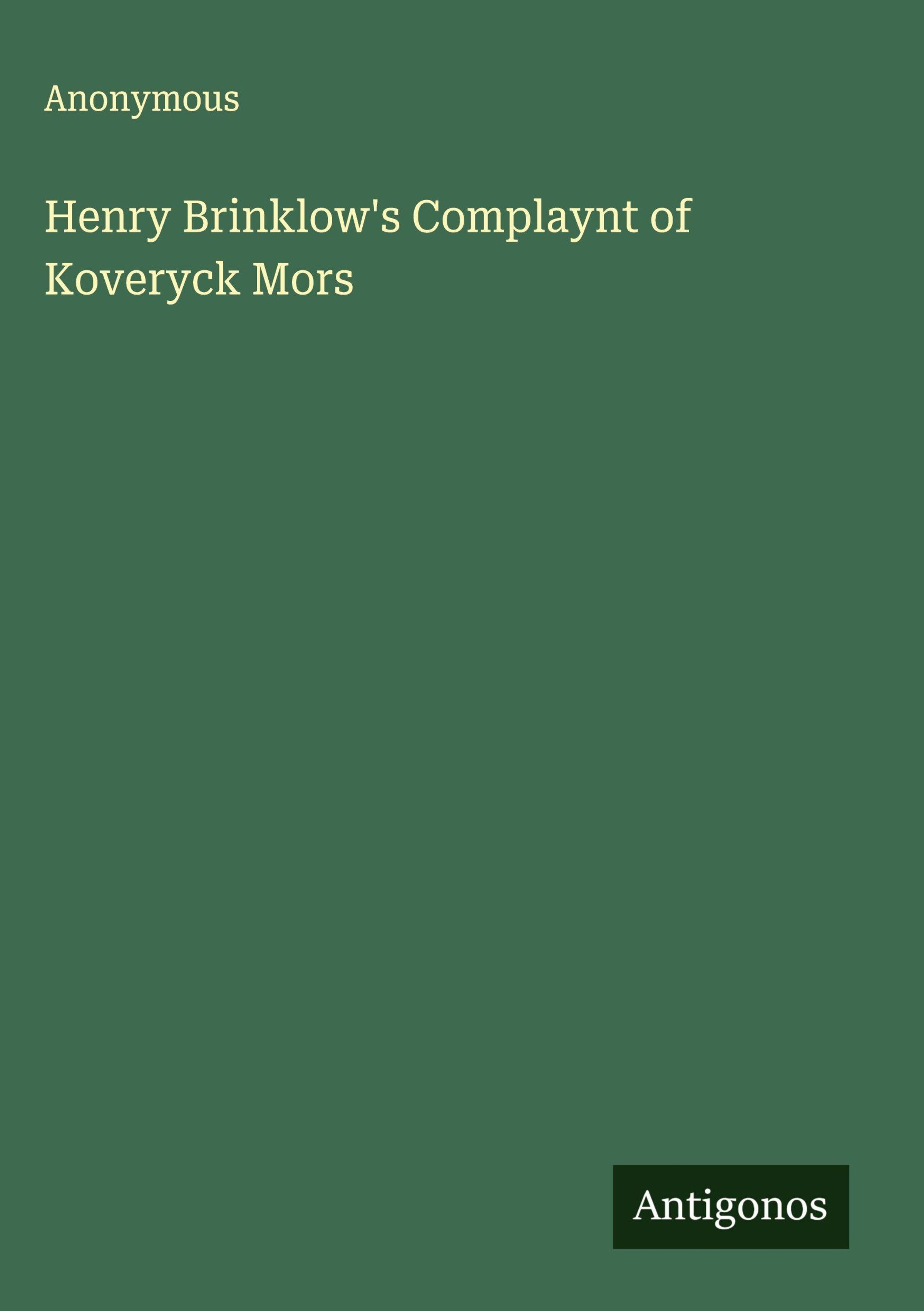 Henry Brinklow's Complaynt of Koveryck Mors