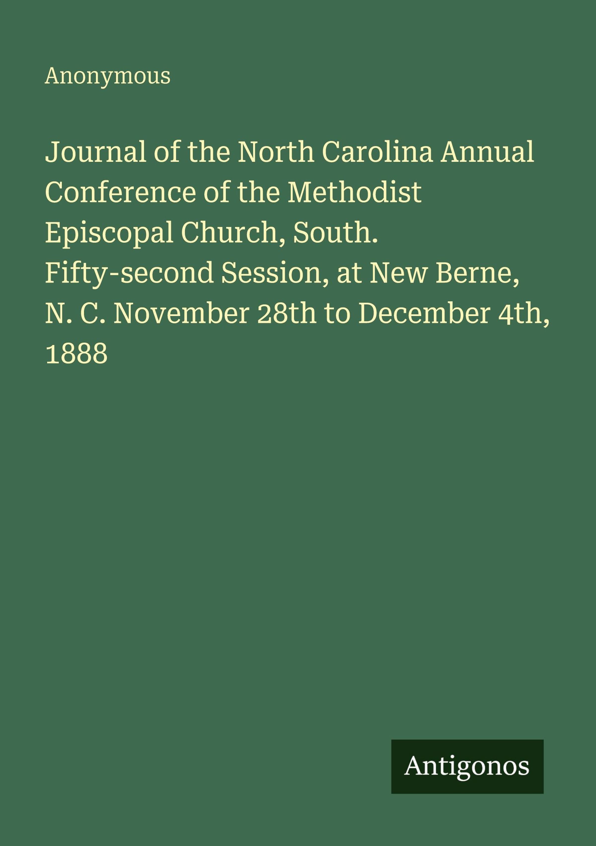 Journal of the North Carolina Annual Conference of the Methodist Episcopal Church, South. Fifty-second Session, at New Berne, N. C. November 28th to December 4th, 1888