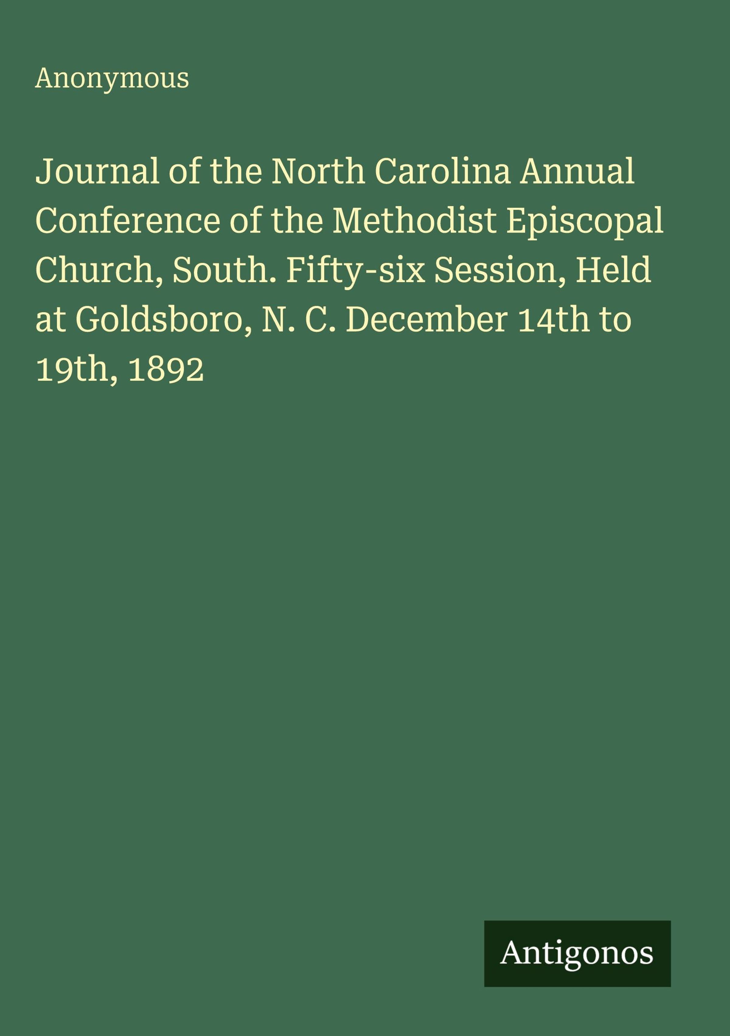 Journal of the North Carolina Annual Conference of the Methodist Episcopal Church, South. Fifty-six Session, Held at Goldsboro, N. C. December 14th to 19th, 1892
