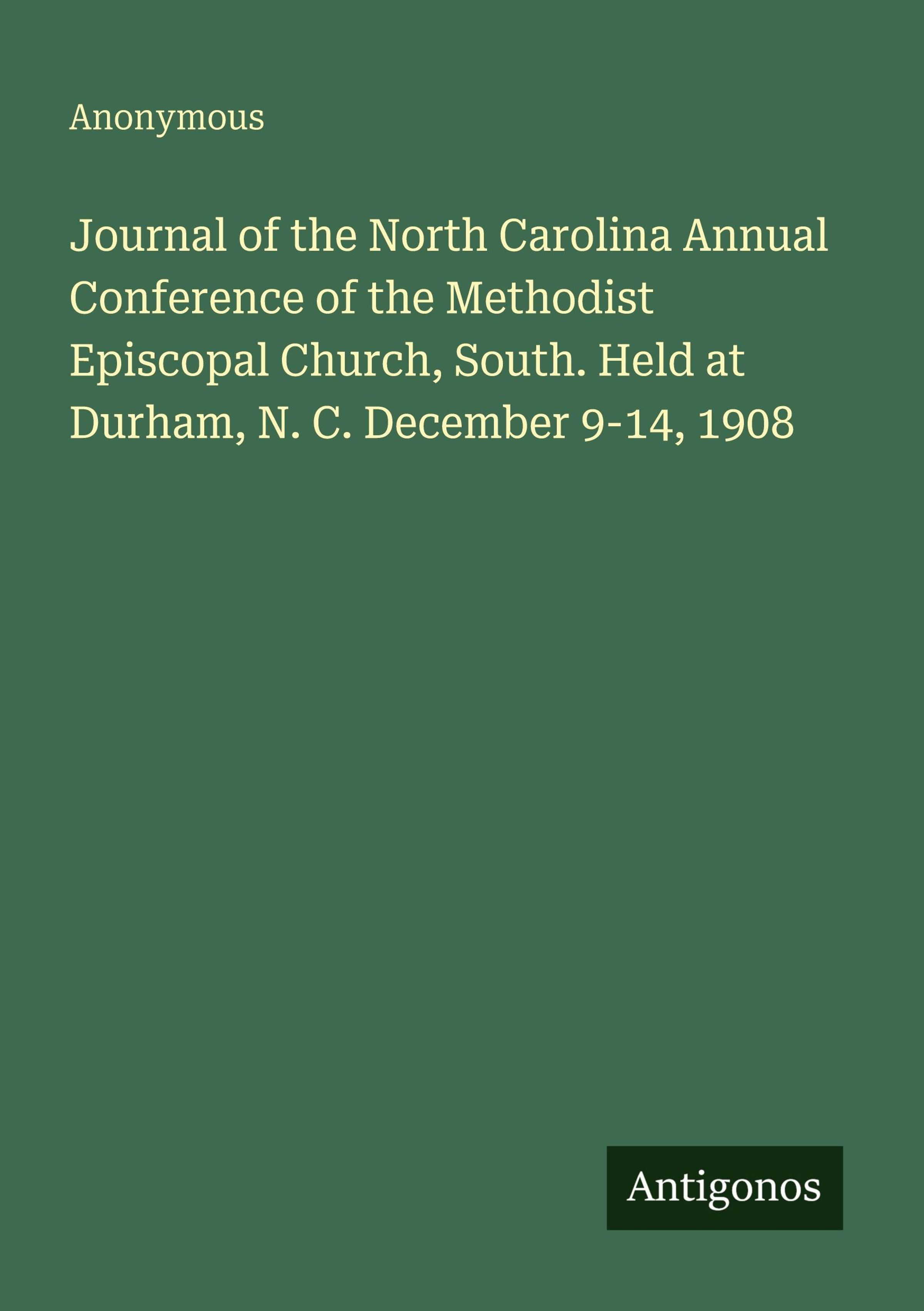 Journal of the North Carolina Annual Conference of the Methodist Episcopal Church, South. Held at Durham, N. C. December 9-14, 1908