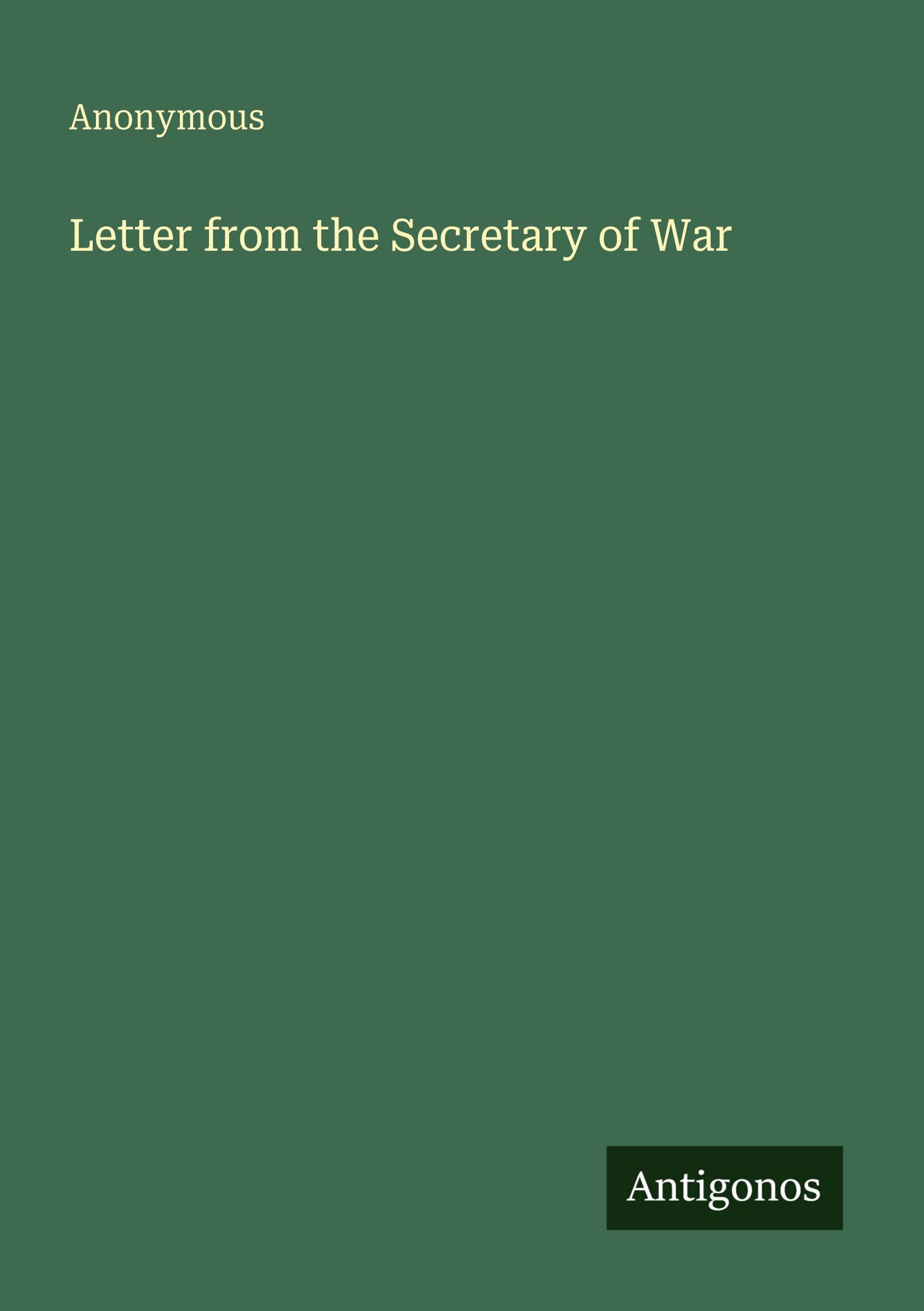 Anonymous: Letter from the Secretary of War, Kartoniert / Broschiert