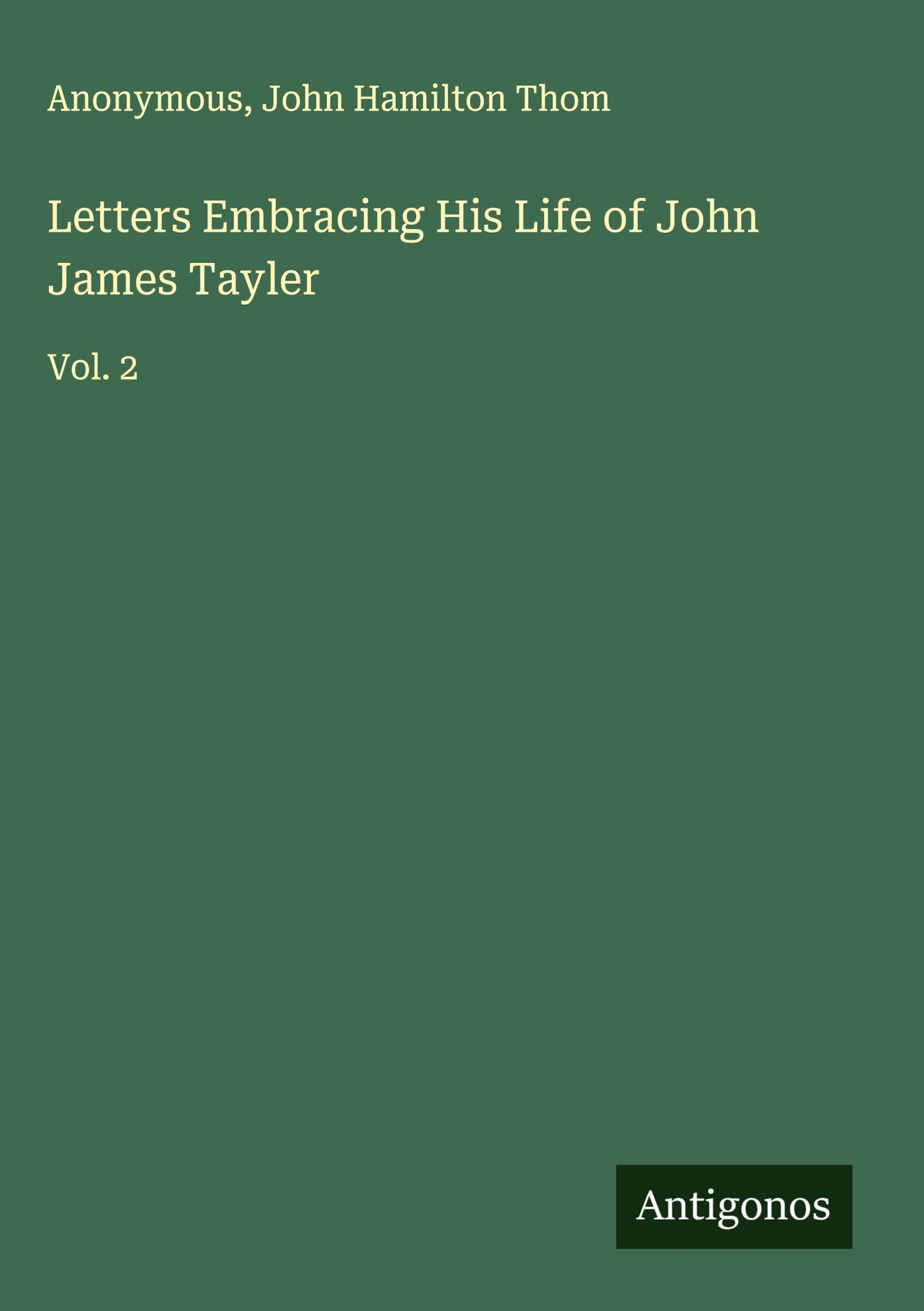 Anonymous: Letters Embracing His Life of John James Tayler, Gebunden