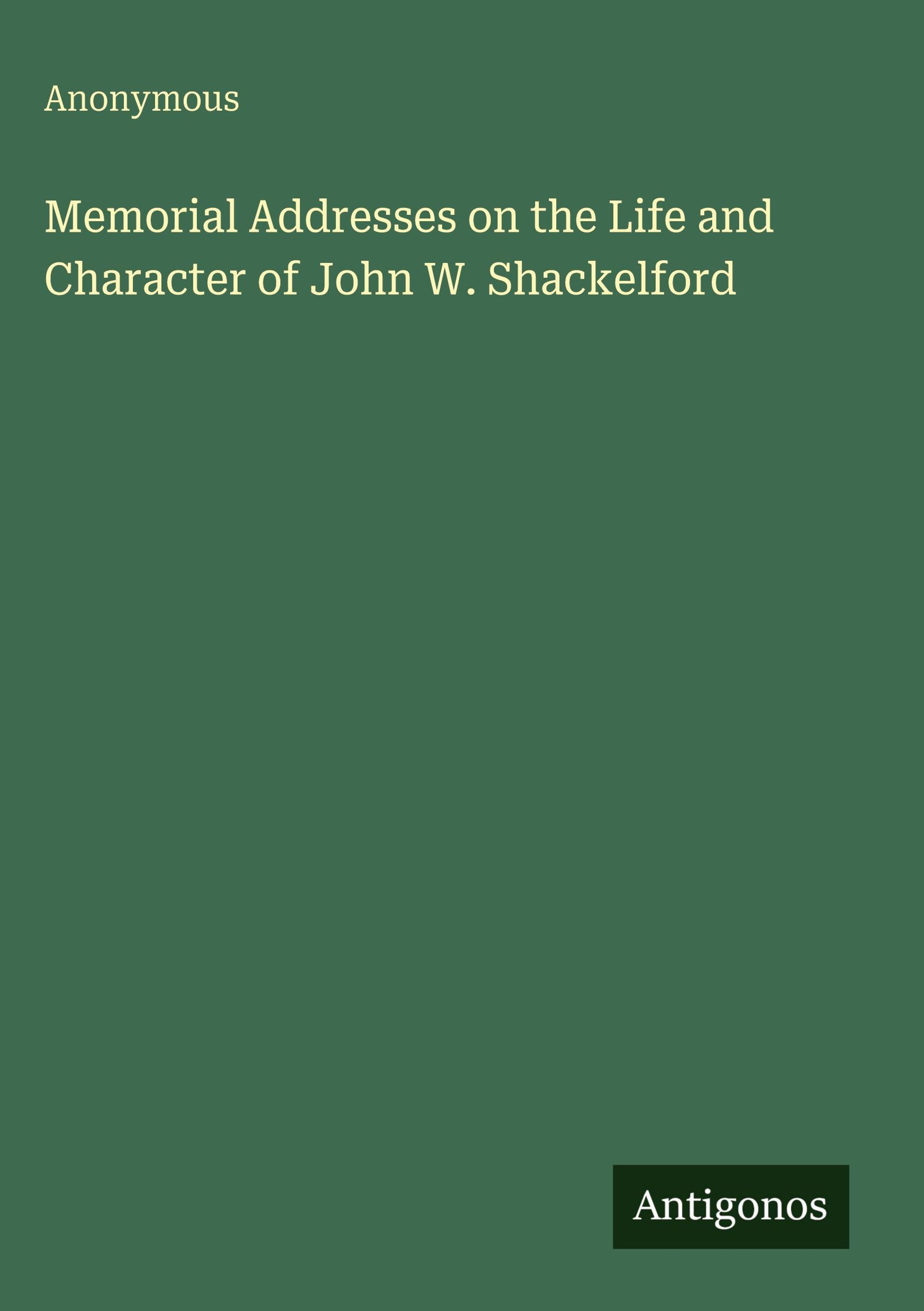 Anonymous: Memorial Addresses on the Life and Character of John W. Shackelford, Gebunden