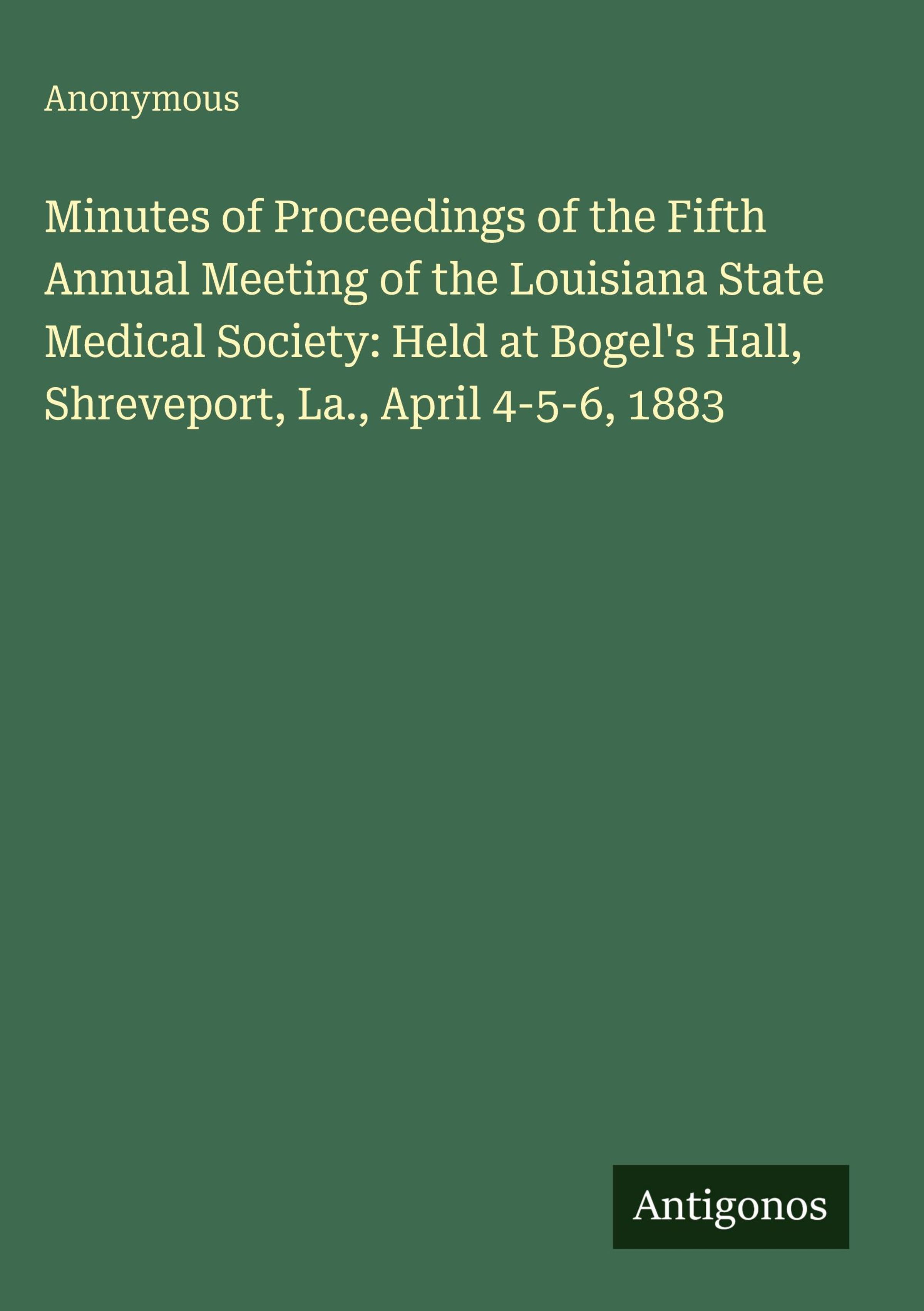 Anonymous: Minutes of Proceedings of the Fifth Annual Meeting of the Louisiana State Medical Society: Held at..., Gebunden