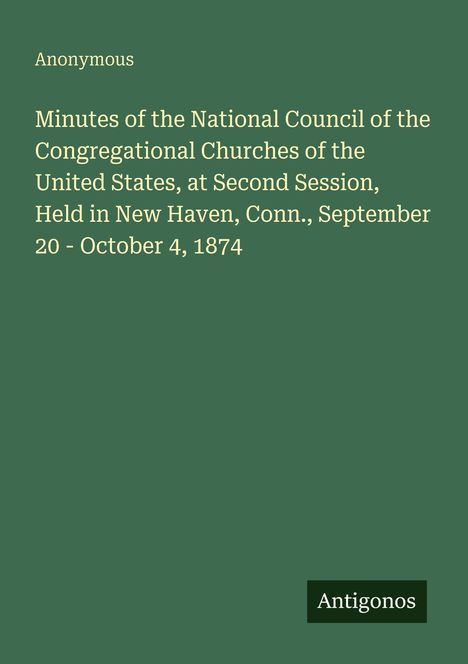 Minutes of the National Council of the Congregational Churches of the United States, at Second Session, Held in New Haven, Conn., September 20 - October 4, 1874