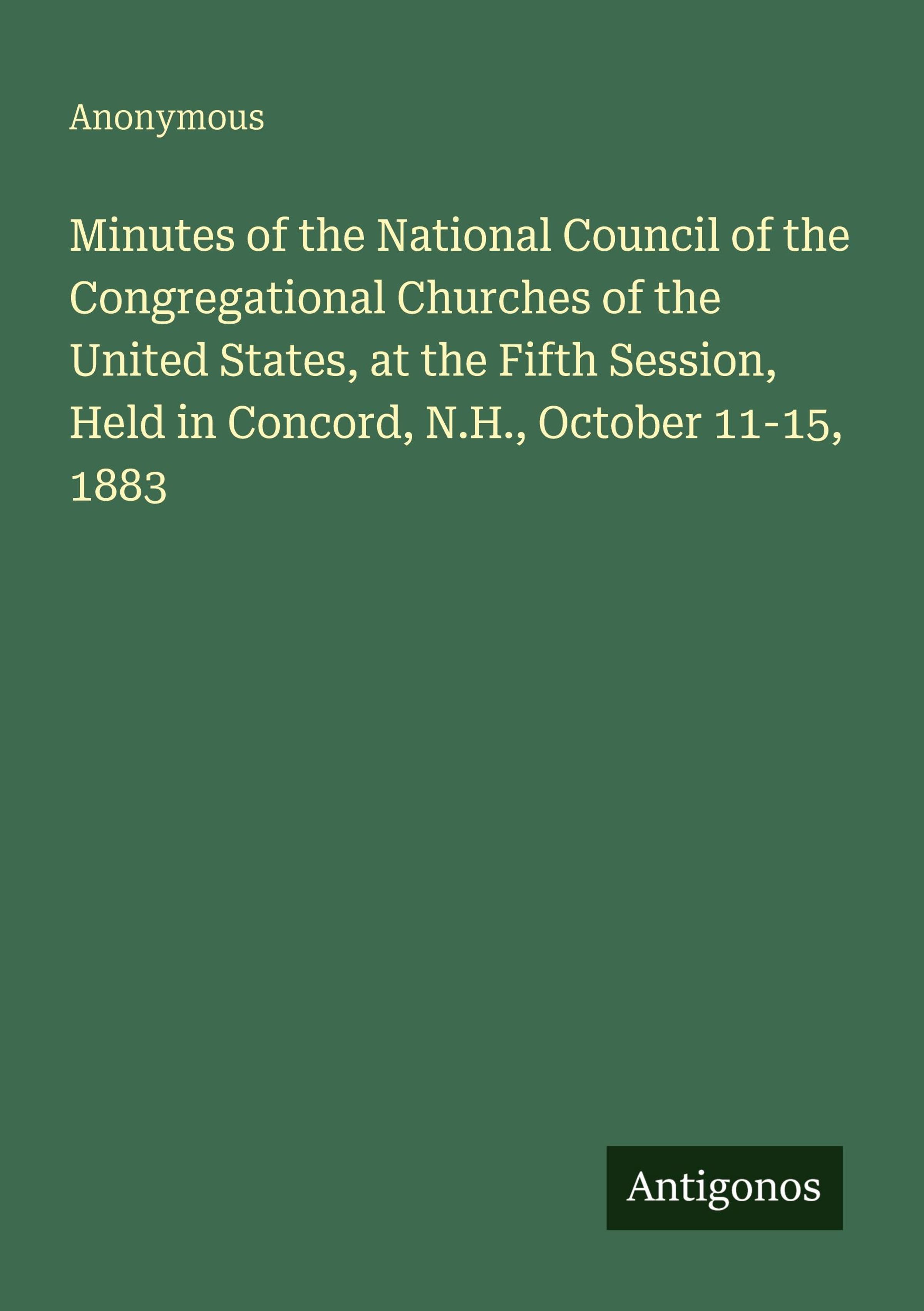 Minutes of the National Council of the Congregational Churches of the United States, at the Fifth Session, Held in Concord, N.H., October 11-15, 1883