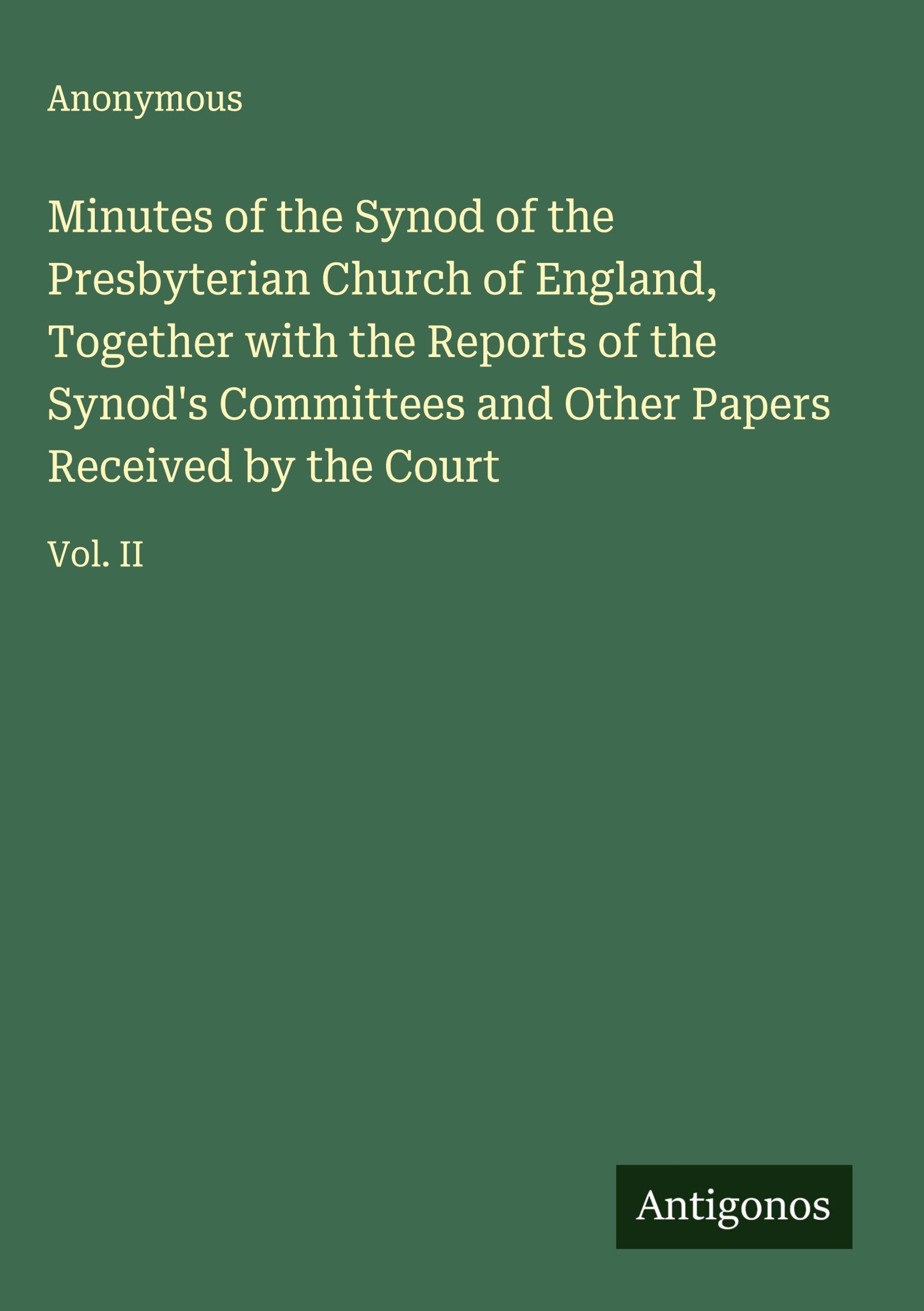 Anonymous: Minutes of the Synod of the Presbyterian Church of England, Together with the Reports of the Synod's..., Gebunden