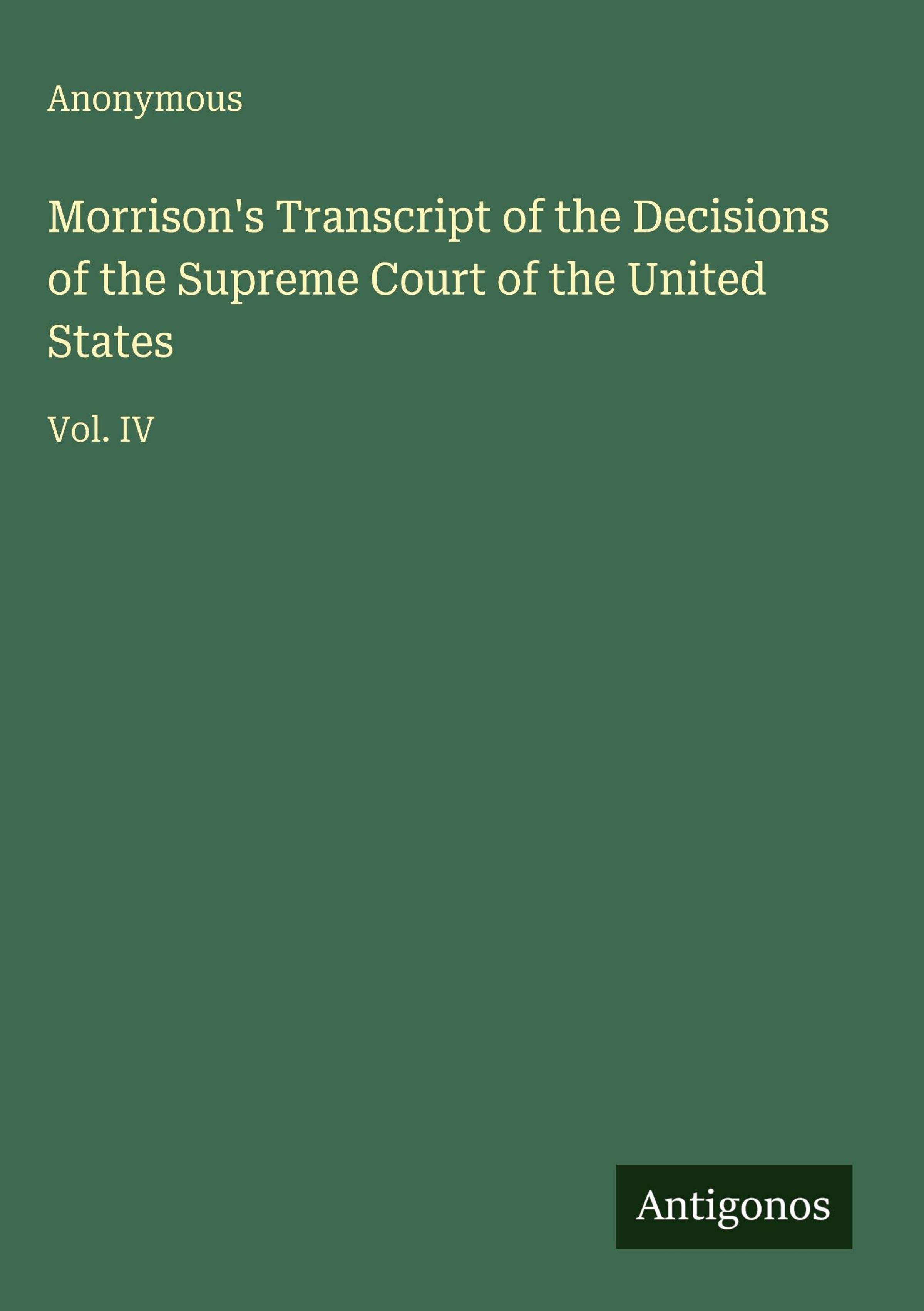 Anonymous: Morrison's Transcript of the Decisions of the Supreme Court of the United States, Gebunden
