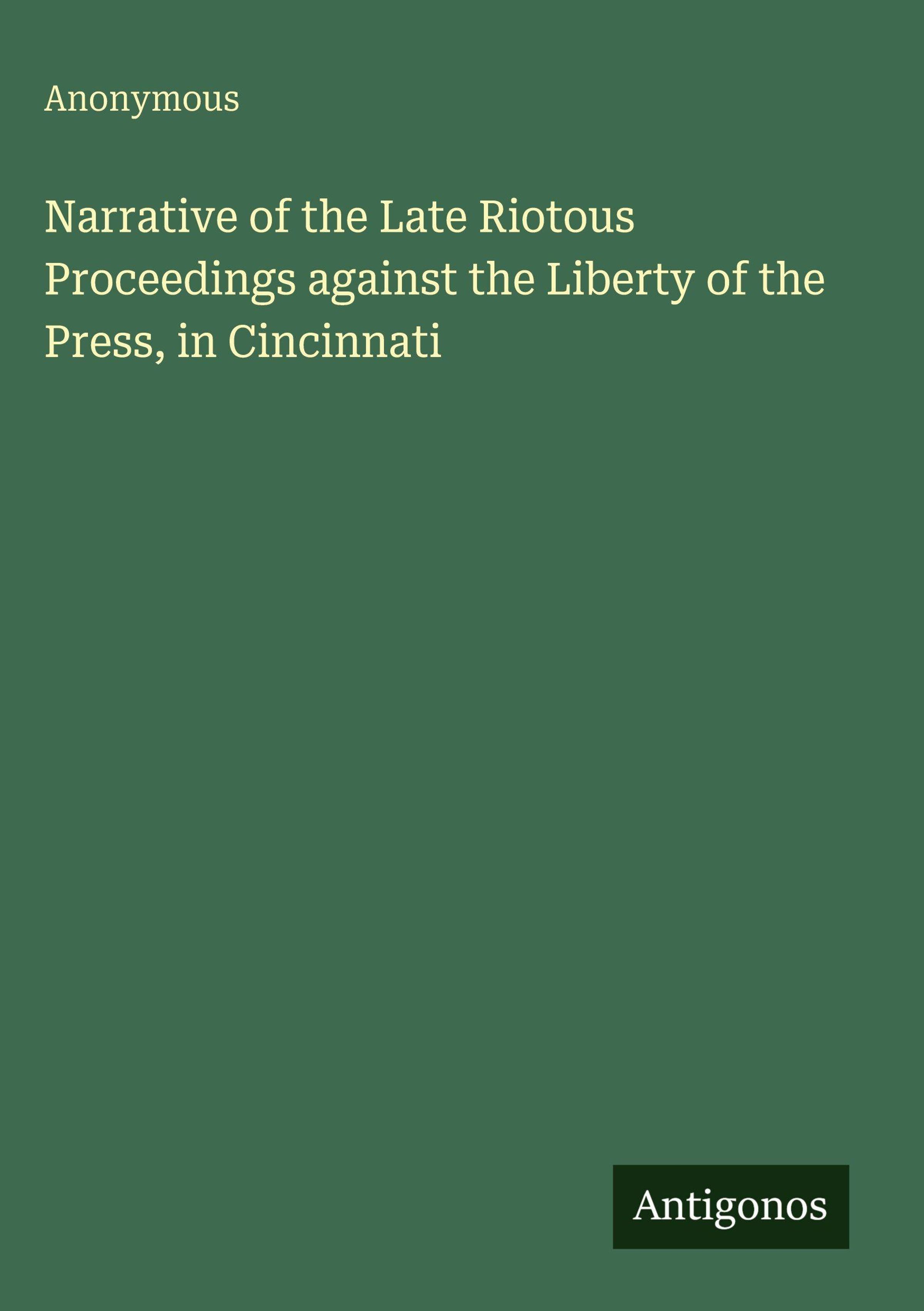 Narrative of the Late Riotous Proceedings against the Liberty of the Press, in Cincinnati