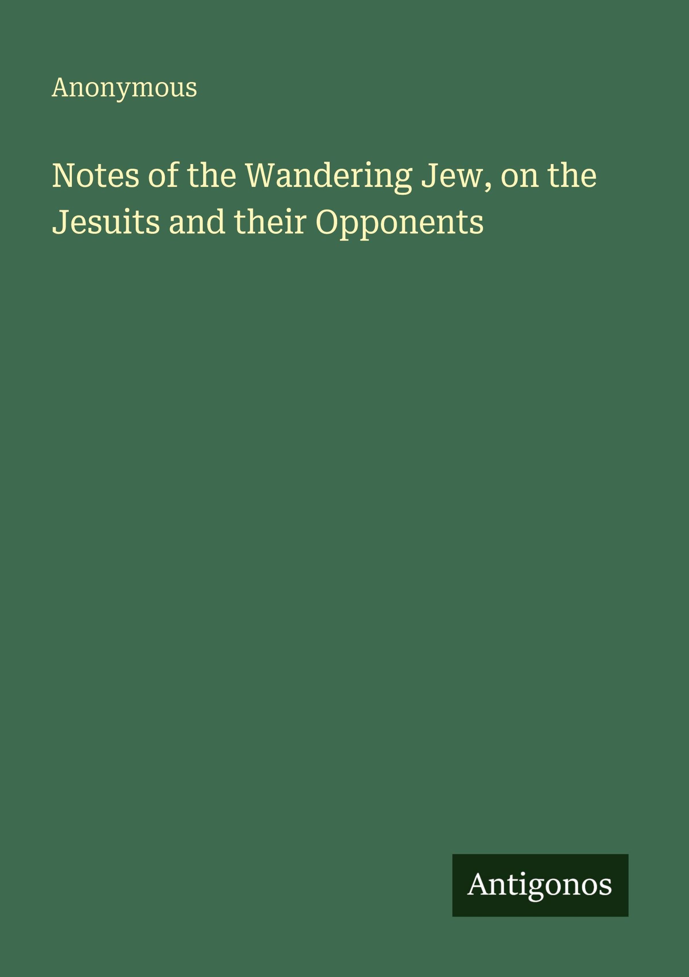 Notes of the Wandering Jew, on the Jesuits and their Opponents