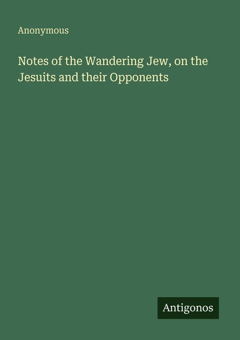 Weitere Ausgaben von Notes of the Wandering Jew, on the Jesuits and their Opponents |