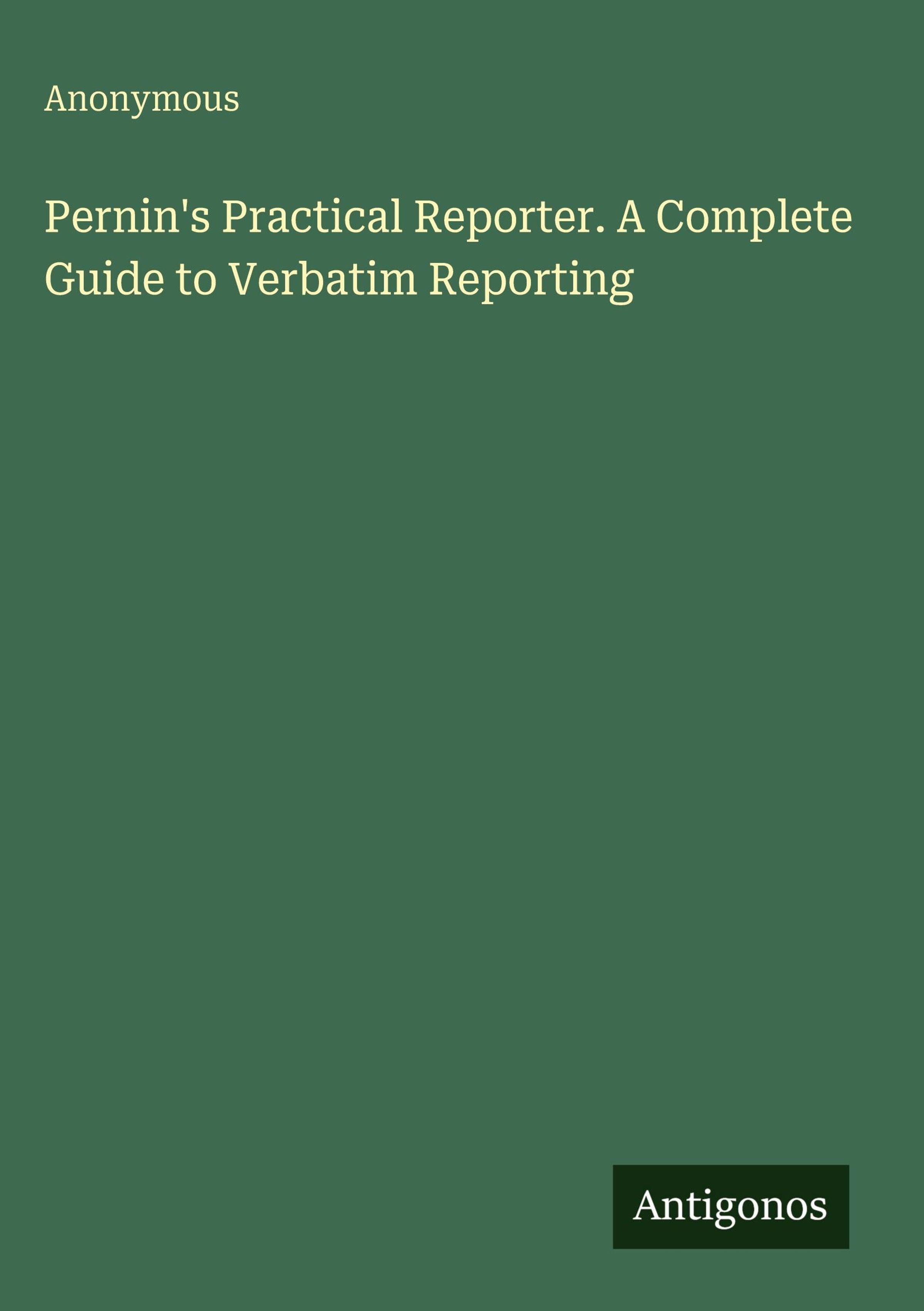 Anonymous: Pernin's Practical Reporter. A Complete Guide to Verbatim Reporting, Gebunden