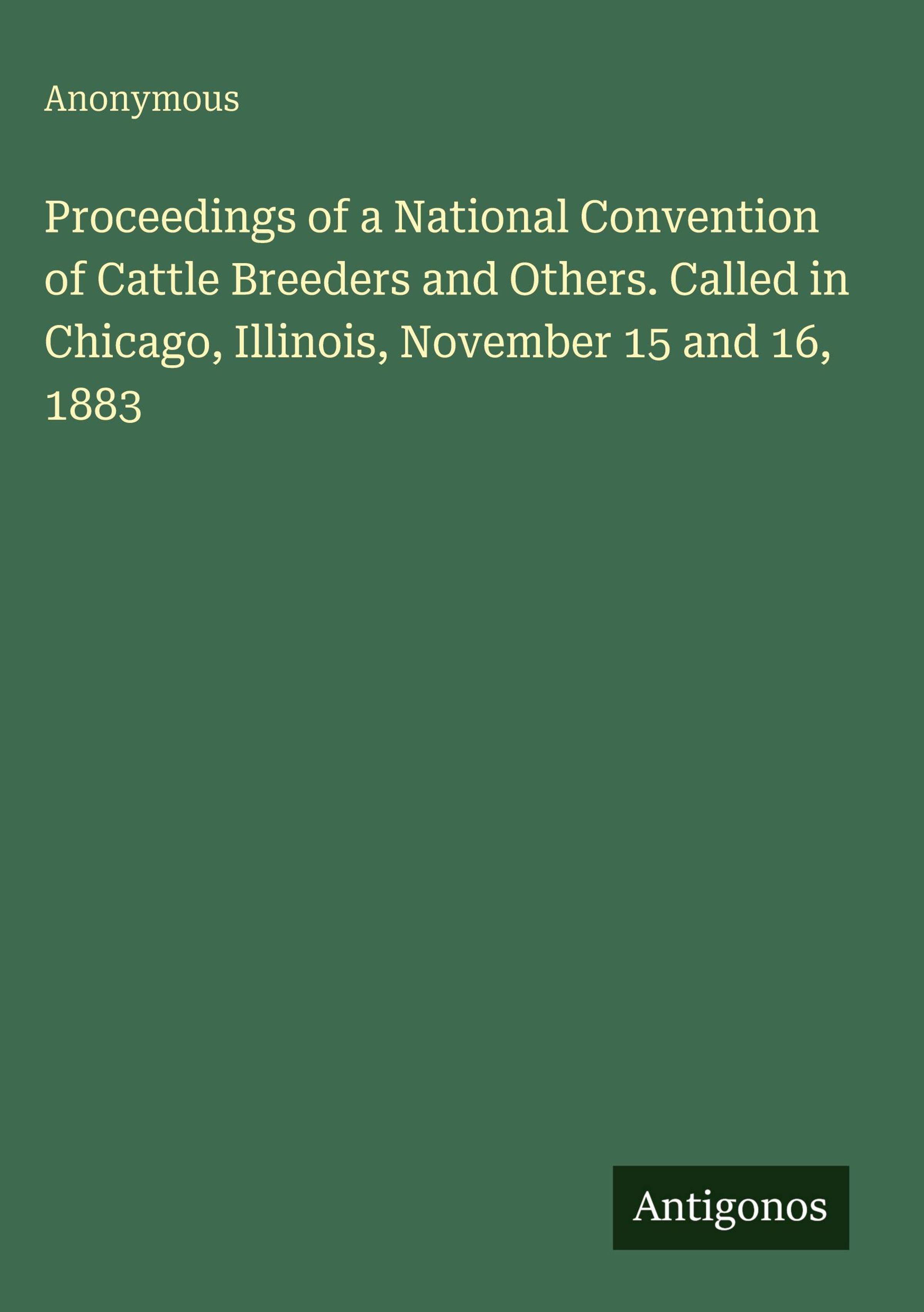 Anonymous: Proceedings of a National Convention of Cattle Breeders and Others. Called in Chicago, Illinois,..., Gebunden