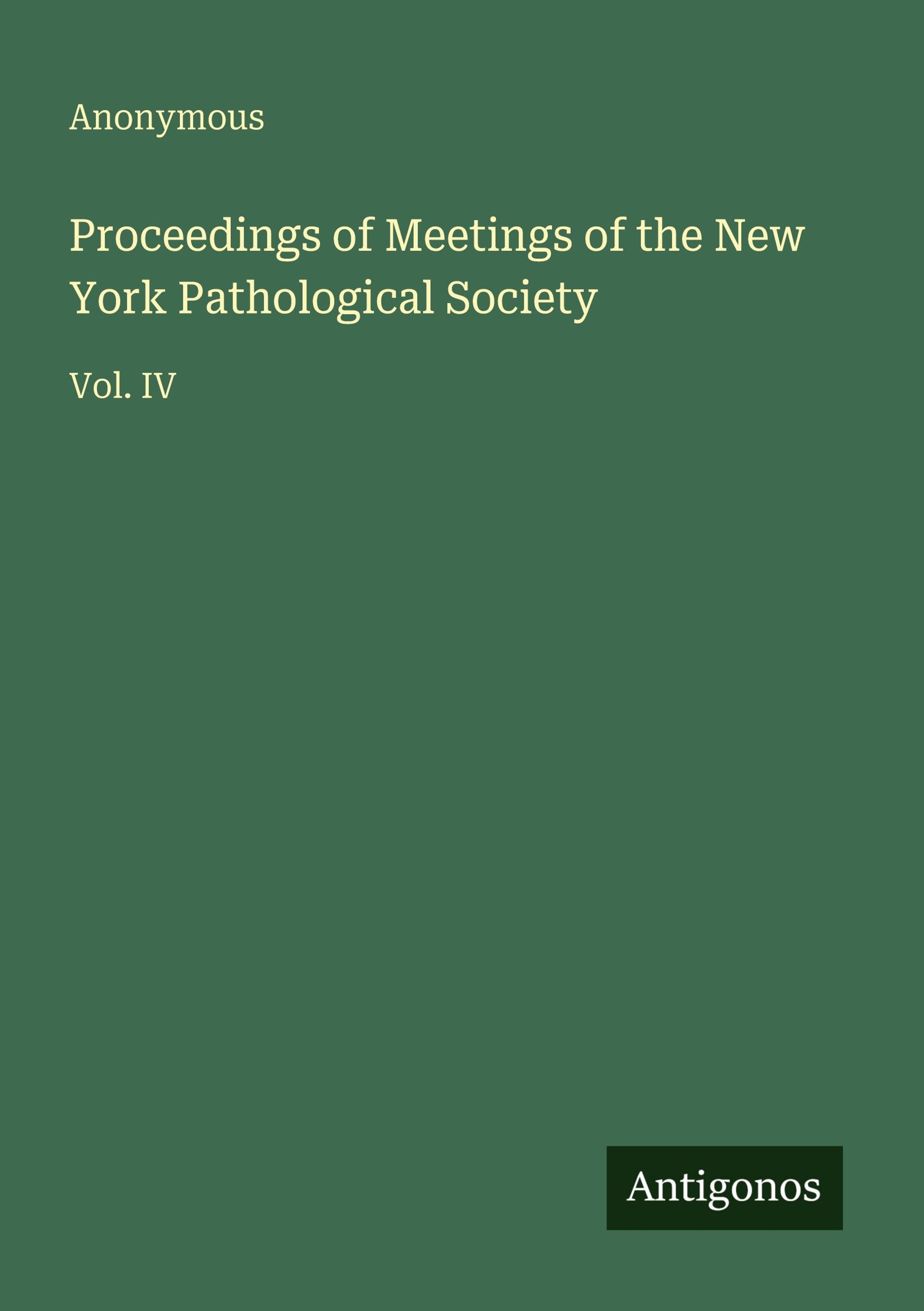 Anonymous: Proceedings of Meetings of the New York Pathological Society, Kartoniert / Broschiert
