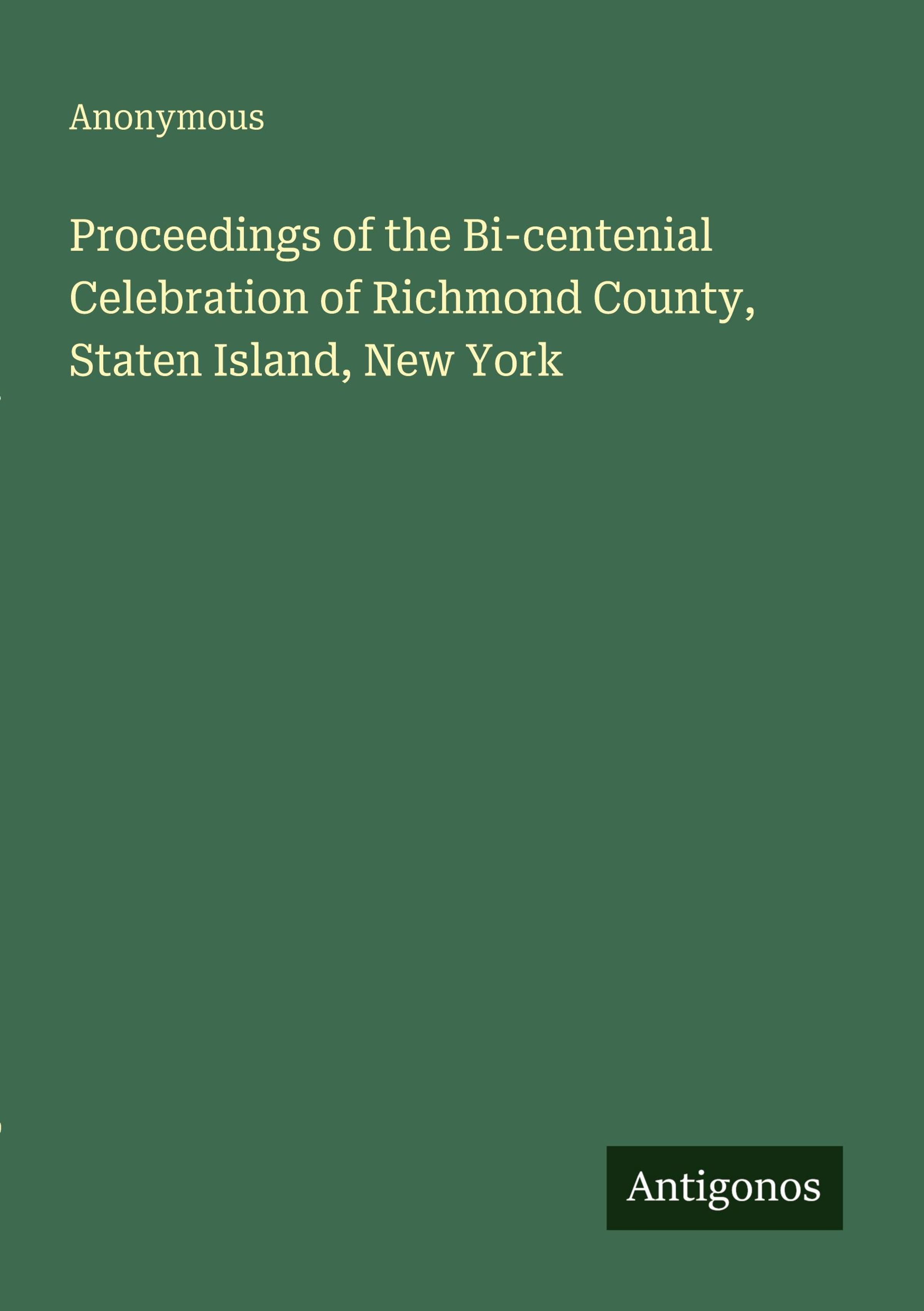 Anonymous: Proceedings of the Bi-centenial Celebration of Richmond County, Staten Island, New York, Kartoniert / Broschiert