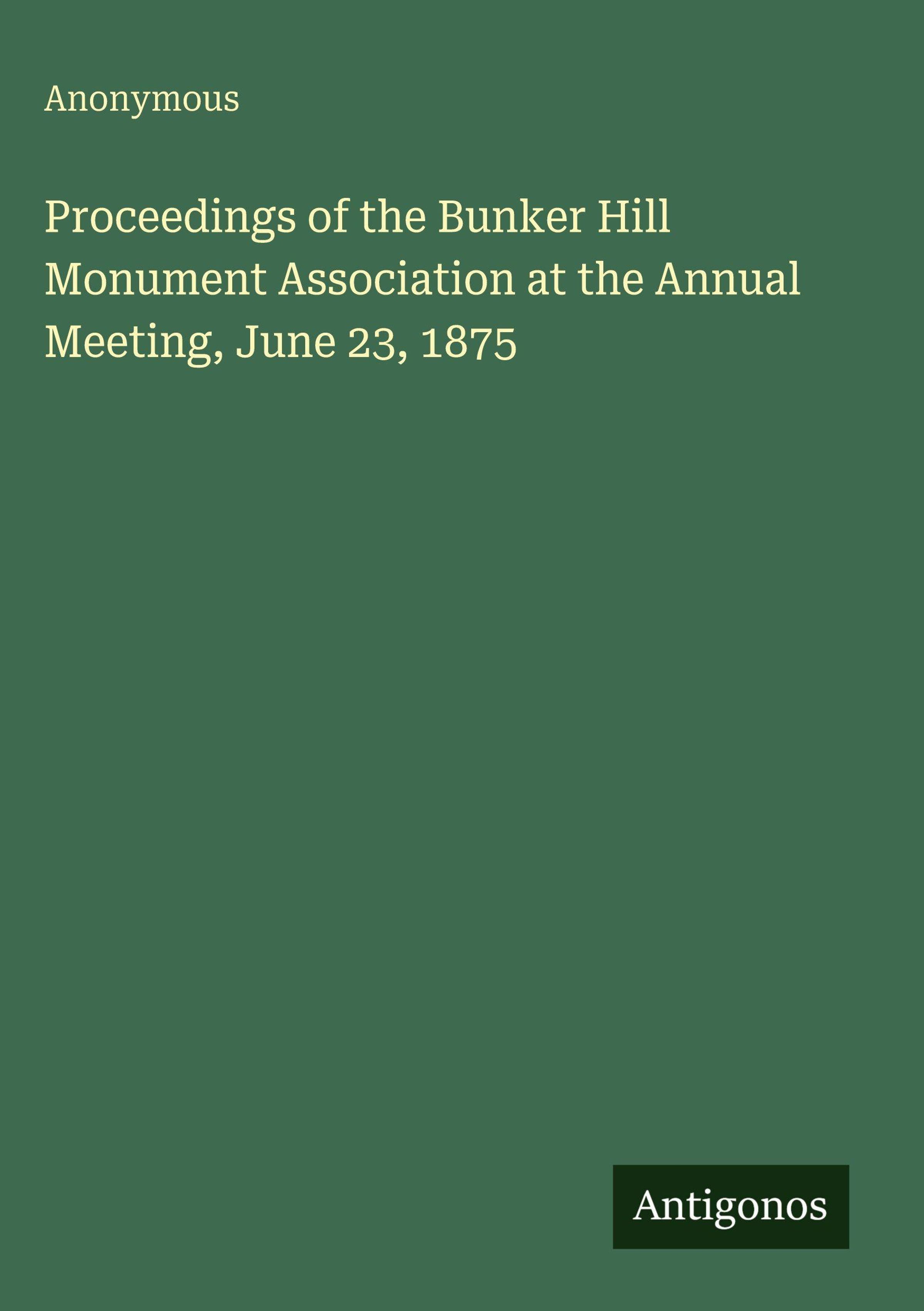 Anonymous: Proceedings of the Bunker Hill Monument Association at the Annual Meeting, June 23, 1875, Gebunden