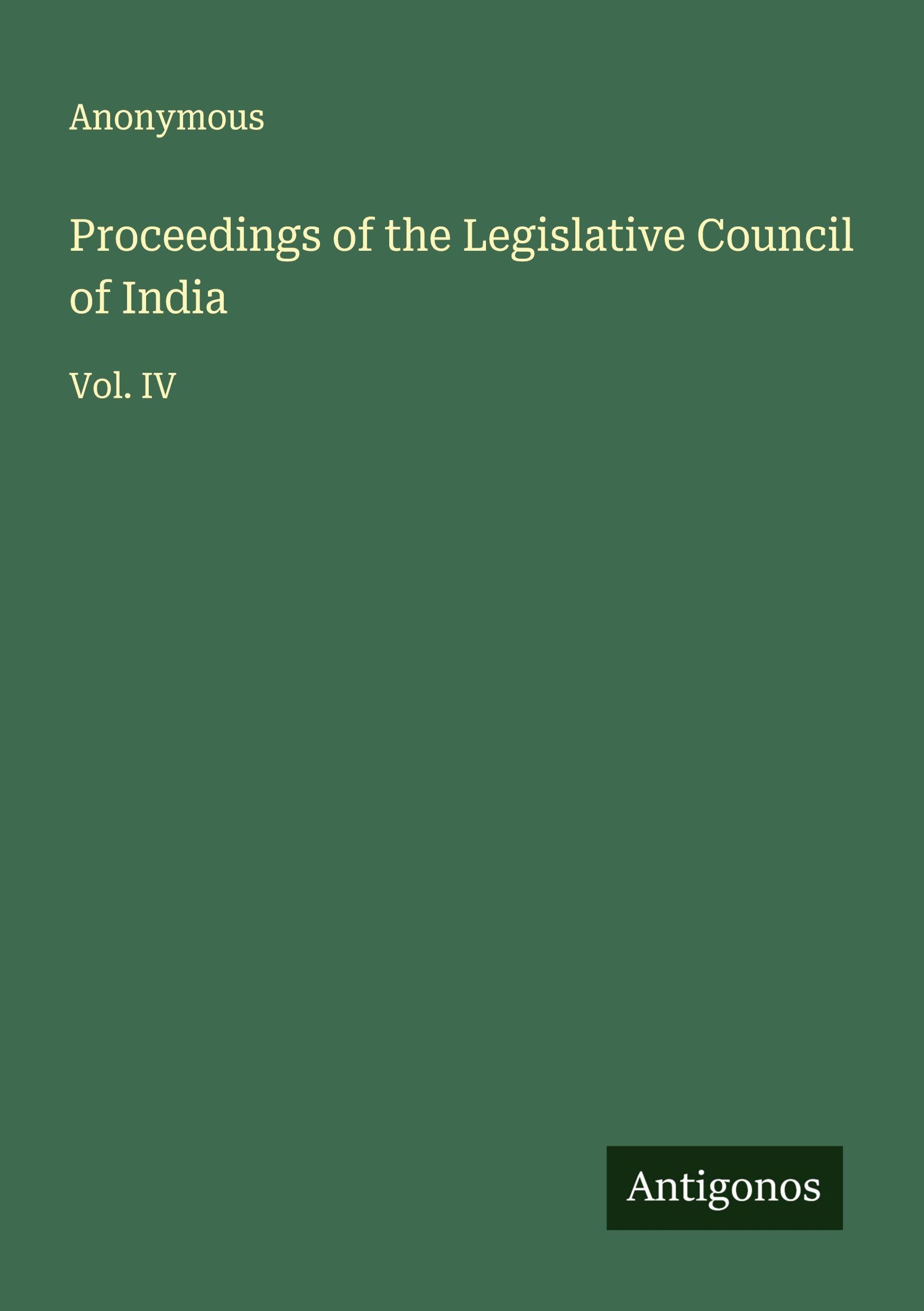 Anonymous: Proceedings of the Legislative Council of India, Kartoniert / Broschiert