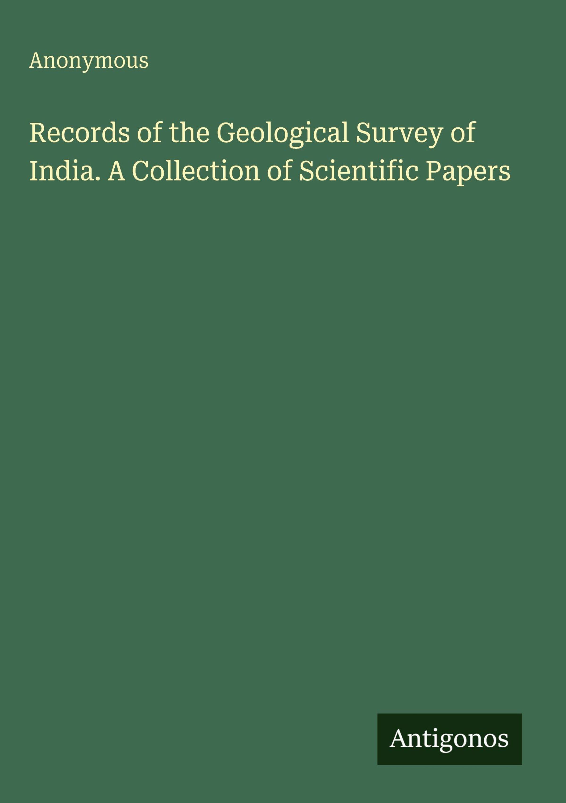 Anonymous: Records of the Geological Survey of India. A Collection of Scientific Papers, Gebunden