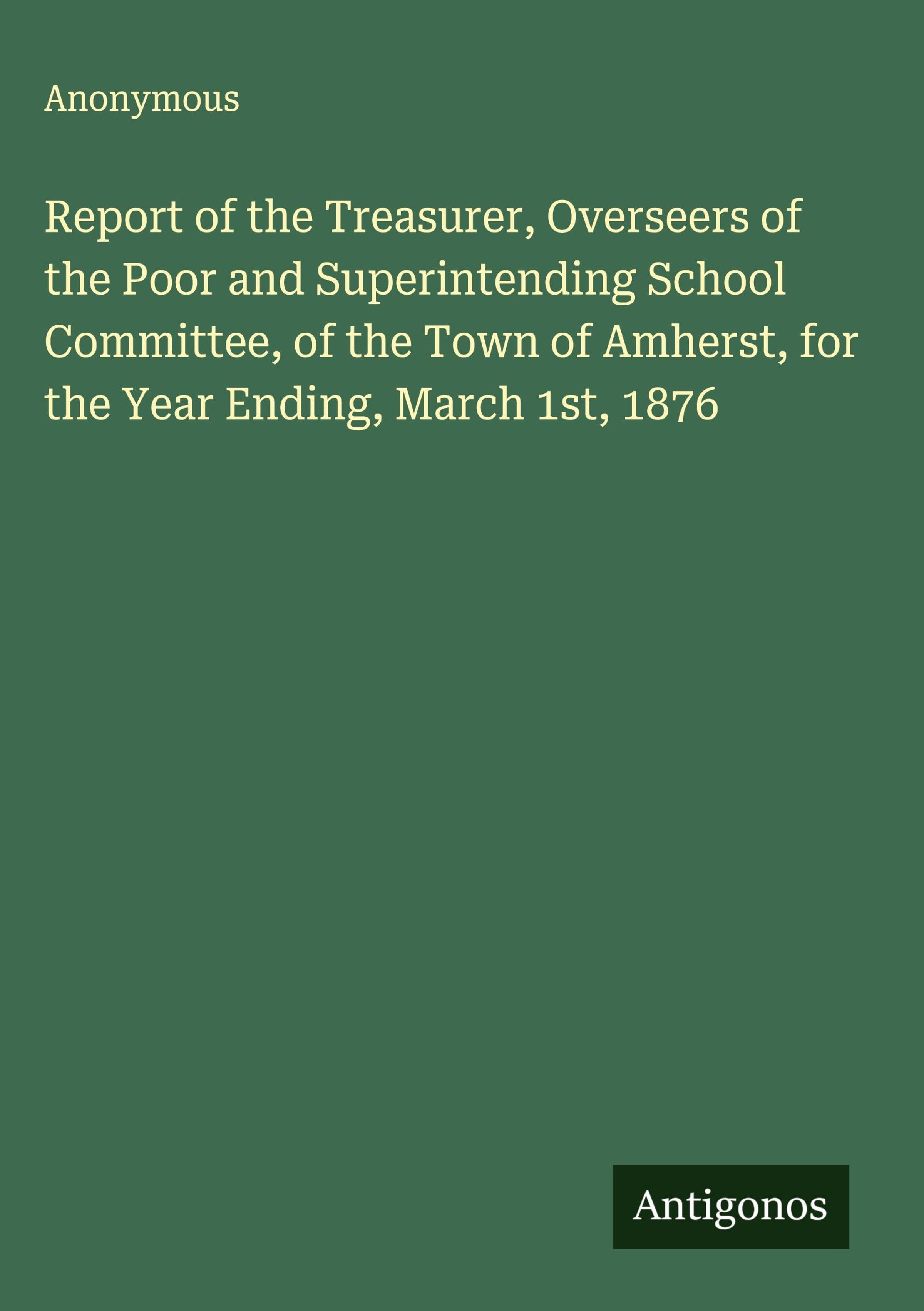 Report of the Treasurer, Overseers of the Poor and Superintending School Committee, of the Town of Amherst, for the Year Ending, March 1st, 1876