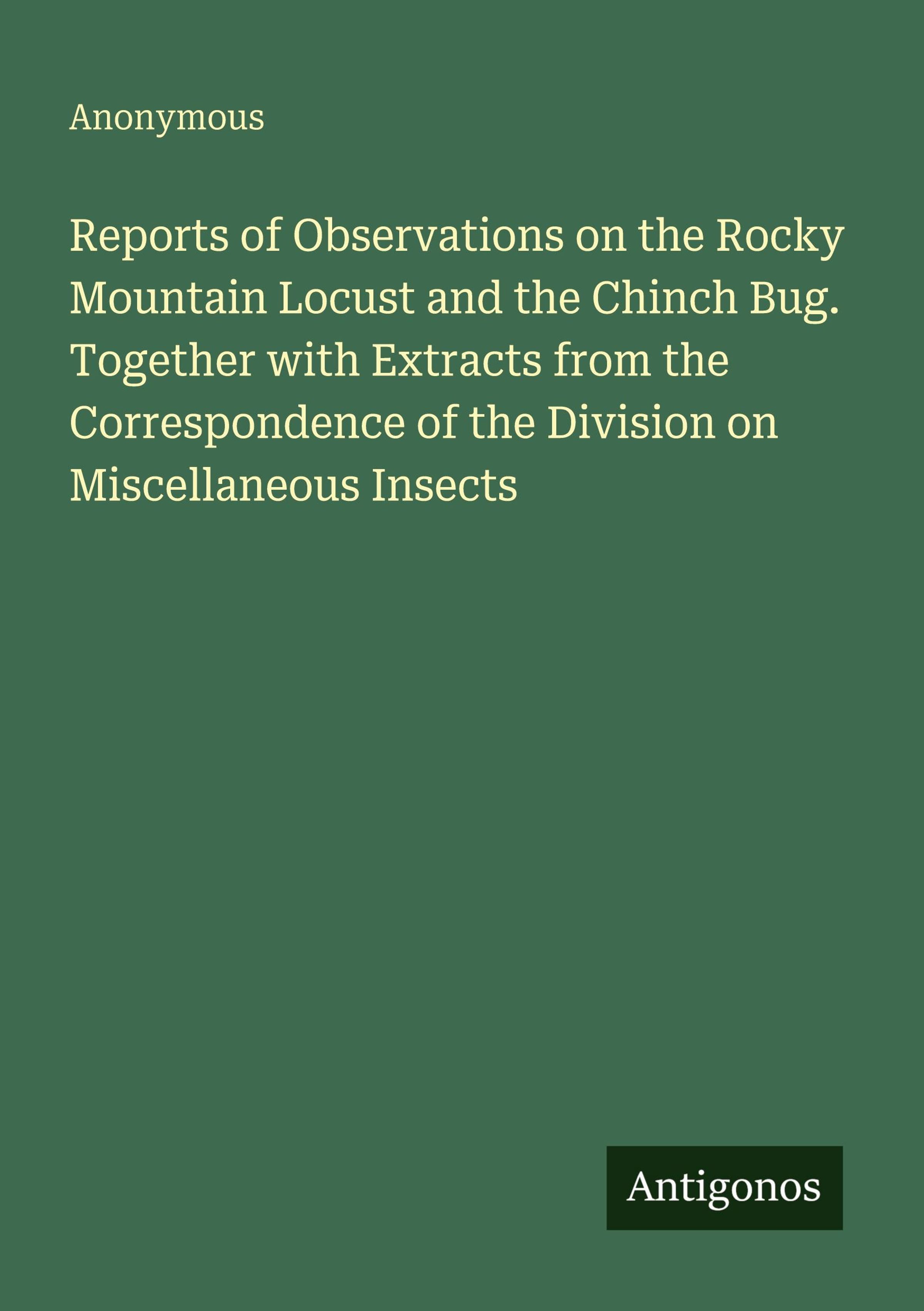 Anonymous: Reports of Observations on the Rocky Mountain Locust and the Chinch Bug. Together with Extracts from..., Kartoniert / Broschiert
