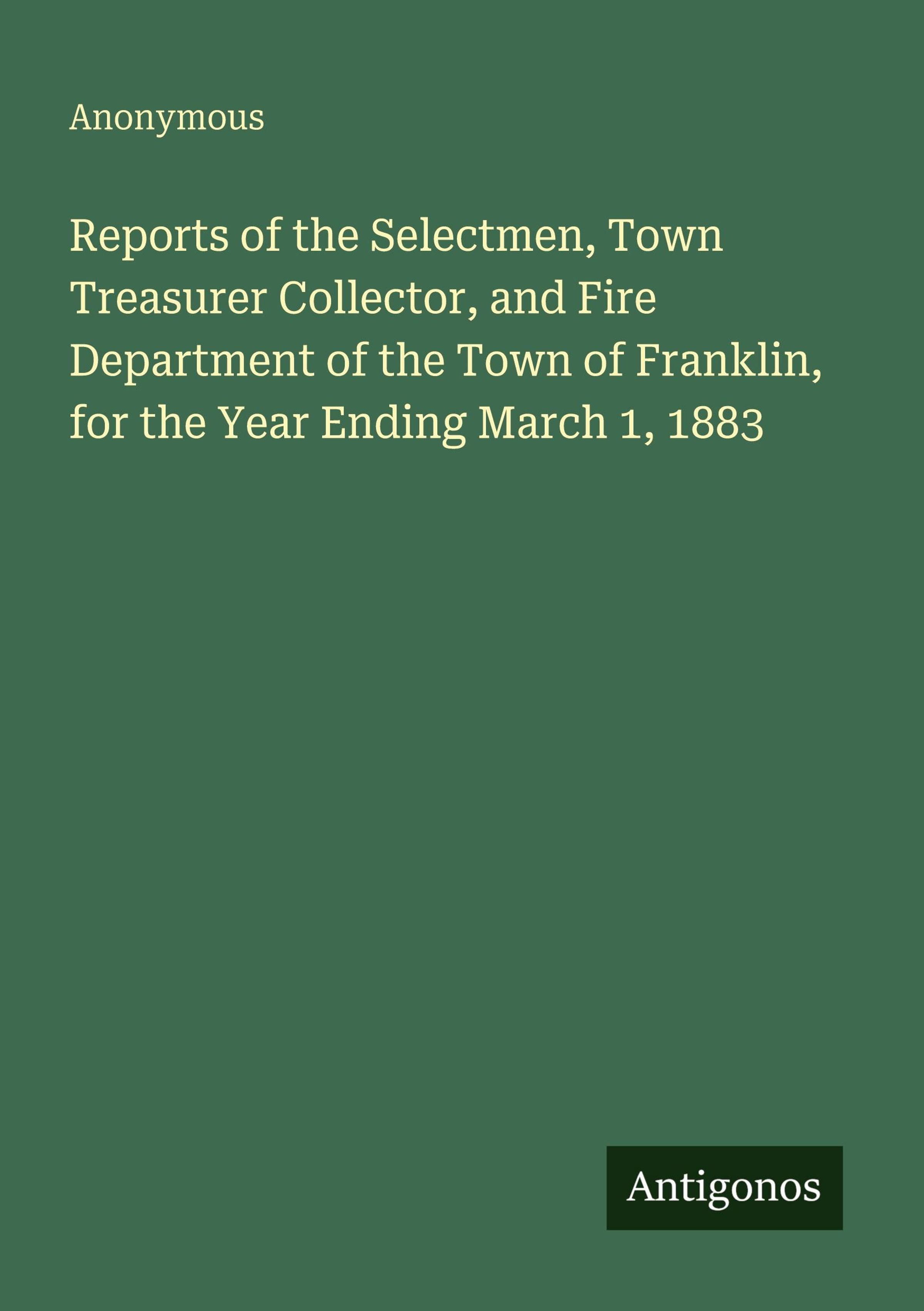 Reports of the Selectmen, Town Treasurer Collector, and Fire Department of the Town of Franklin, for the Year Ending March 1, 1883