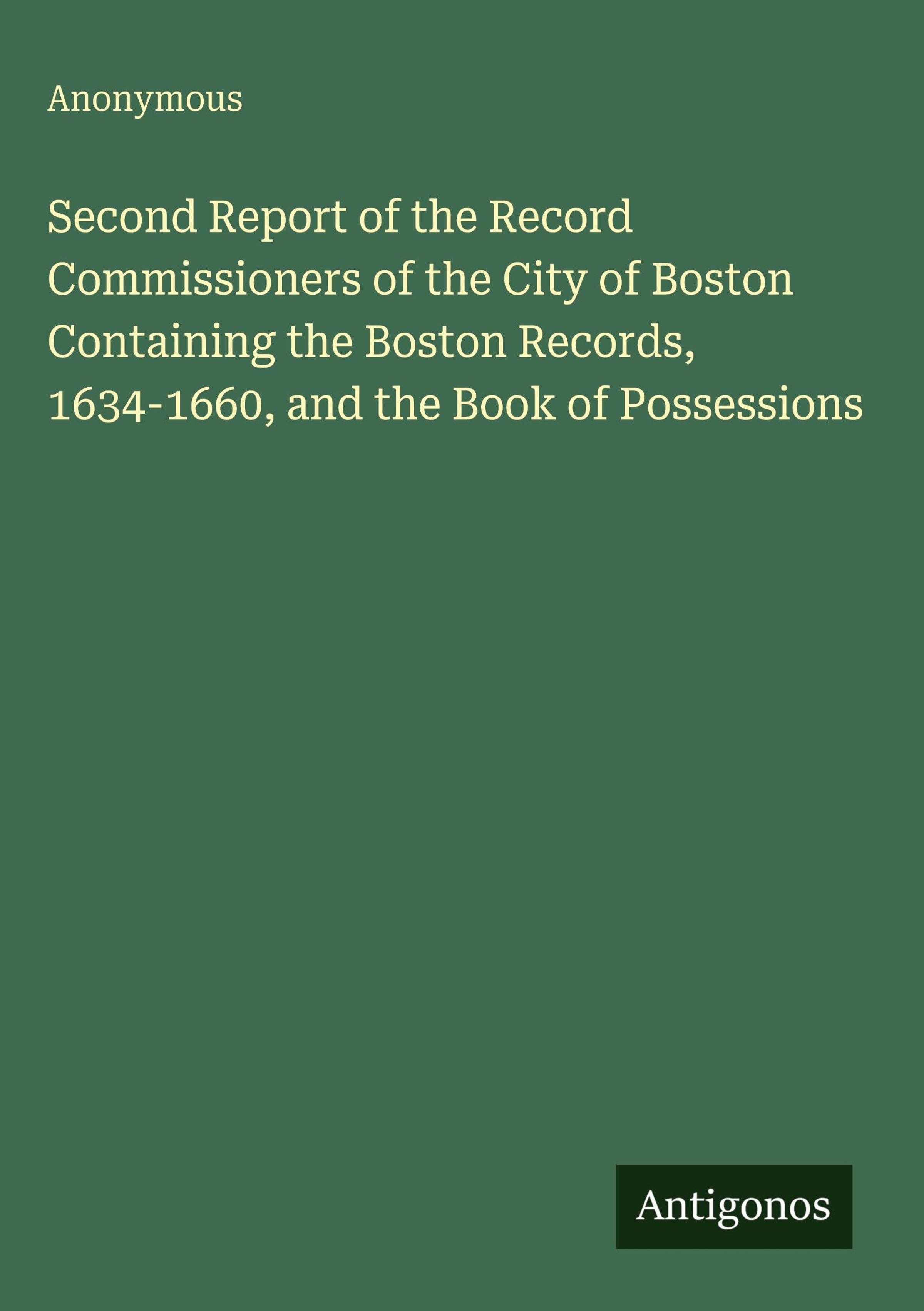 Second Report of the Record Commissioners of the City of Boston Containing the Boston Records, 1634-1660, and the Book of Possessions