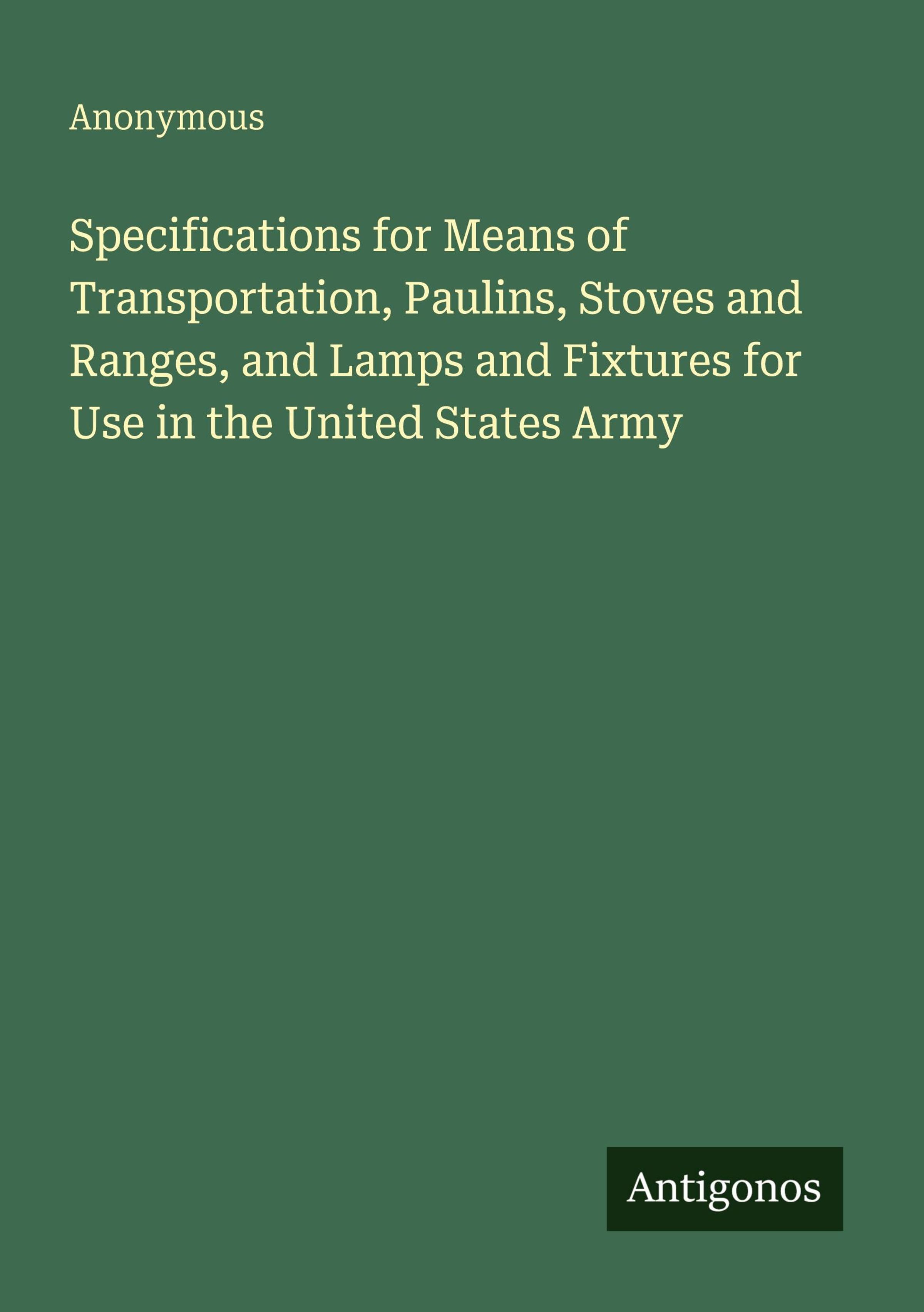 Specifications for Means of Transportation, Paulins, Stoves and Ranges, and Lamps and Fixtures for Use in the United States Army
