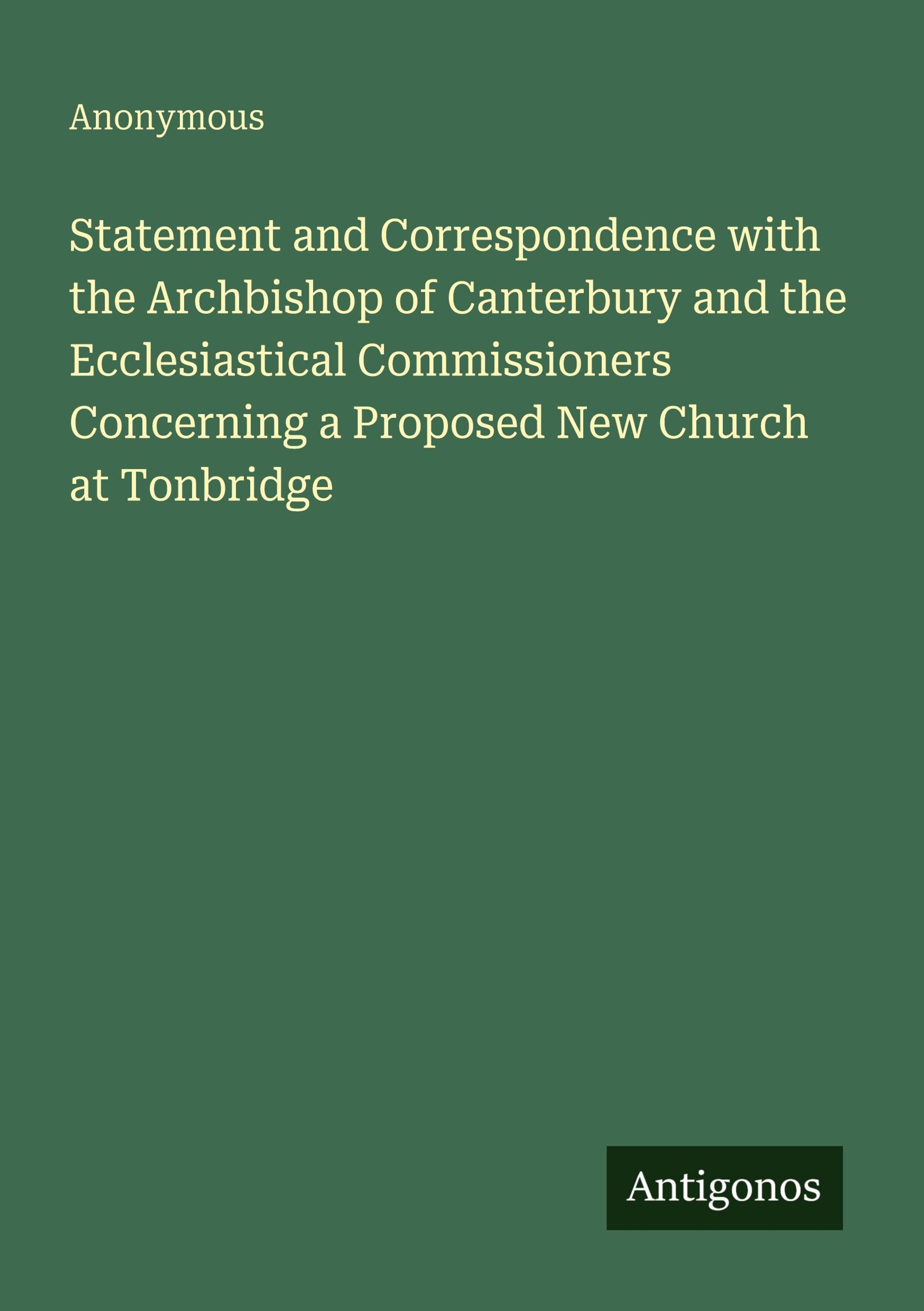 Statement and Correspondence with the Archbishop of Canterbury and the Ecclesiastical Commissioners Concerning a Proposed New Church at Tonbridge
