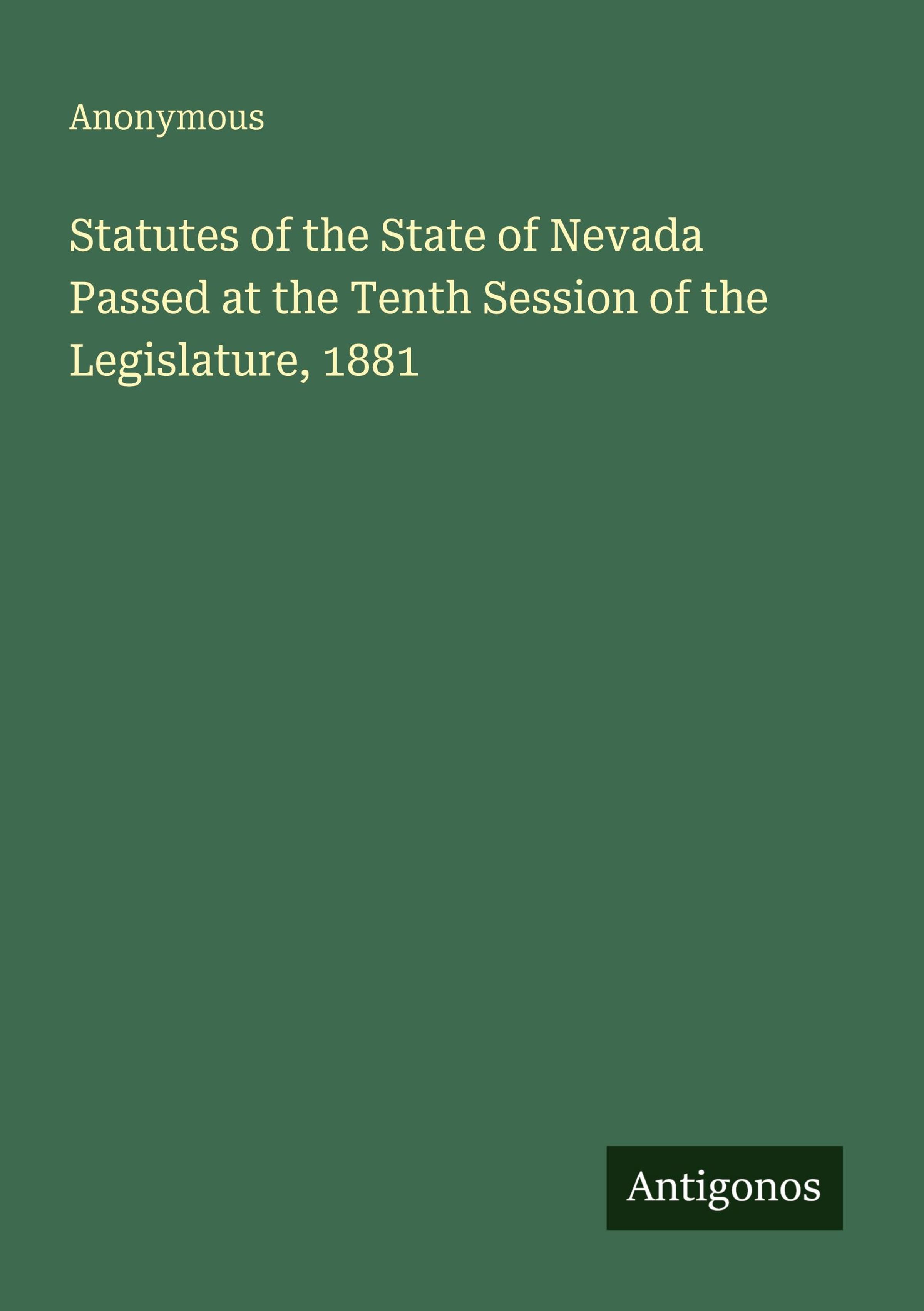 Der Artikel Anonymous: Statutes of the State of Nevada Passed at the Tenth Session of the Legislature, 1881 wurde in den Warenkorb gelegt.