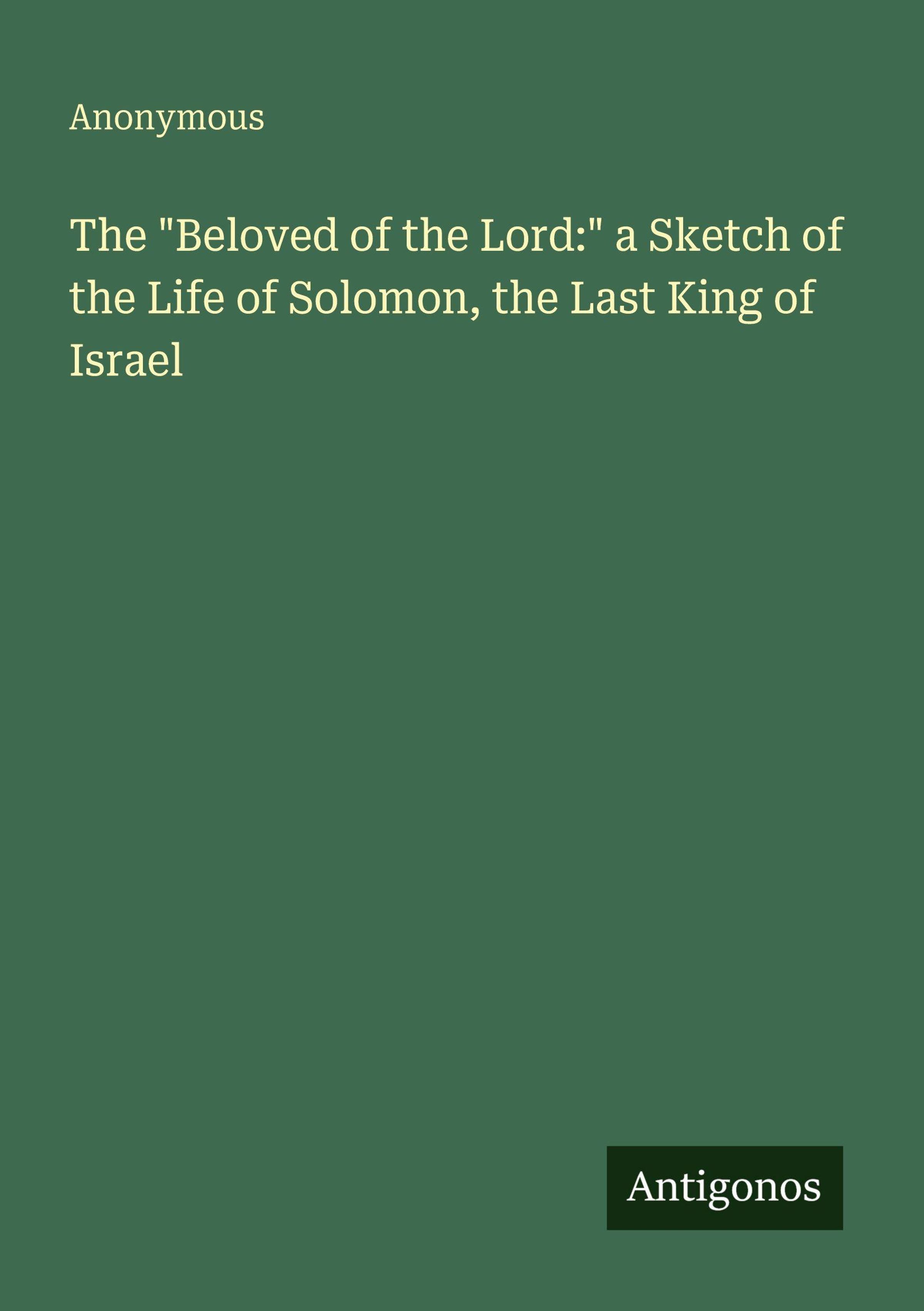 The "Beloved of the Lord:" a Sketch of the Life of Solomon, the Last King of Israel