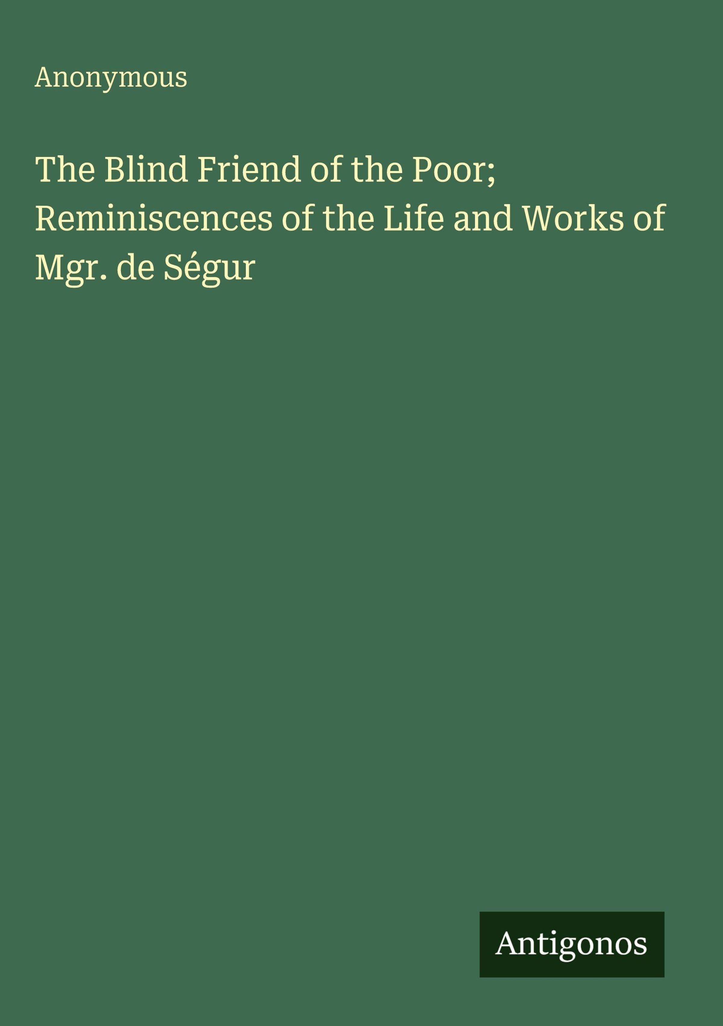 Anonymous: The Blind Friend of the Poor; Reminiscences of the Life and Works of Mgr. de Ségur, Gebunden
