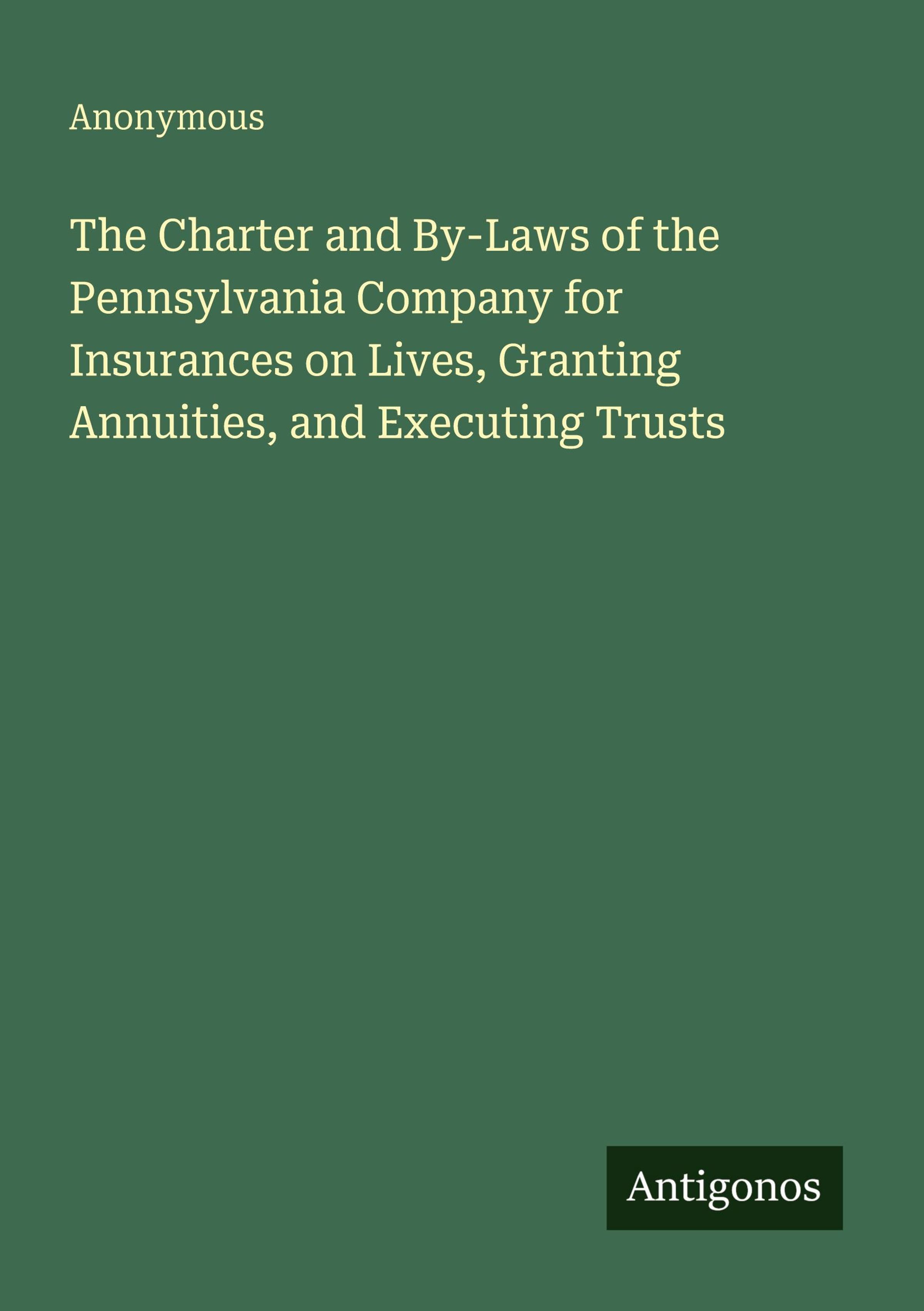 Anonymous: The Charter and By-Laws of the Pennsylvania Company for Insurances on Lives, Granting Annuities, and..., Kartoniert / Broschiert