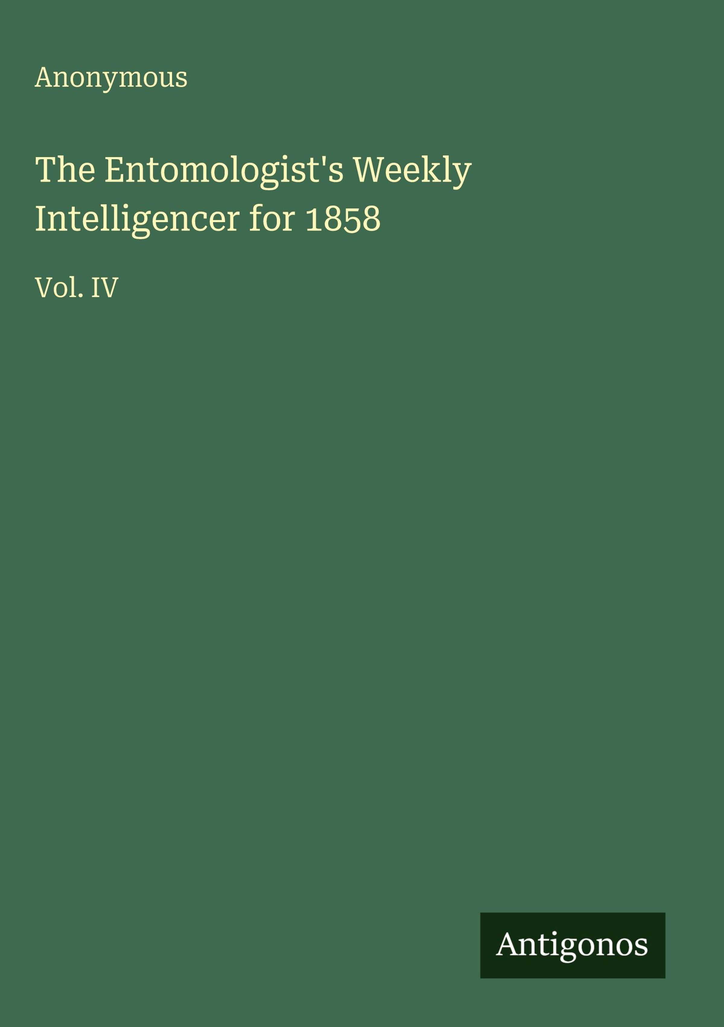 Anonymous: The Entomologist's Weekly Intelligencer for 1858, Gebunden