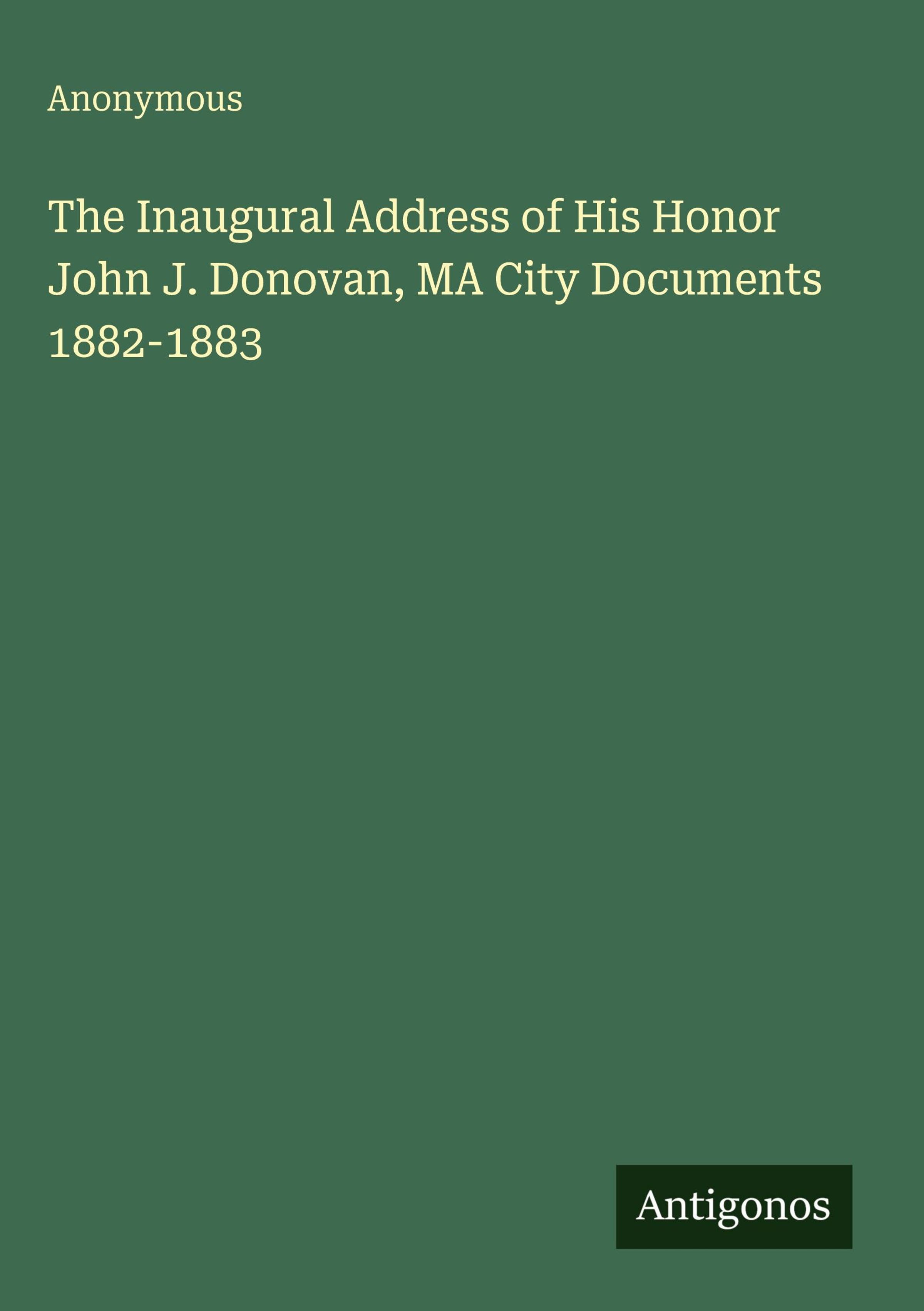 Anonymous: The Inaugural Address of His Honor John J. Donovan, MA City Documents 1882-1883, Gebunden