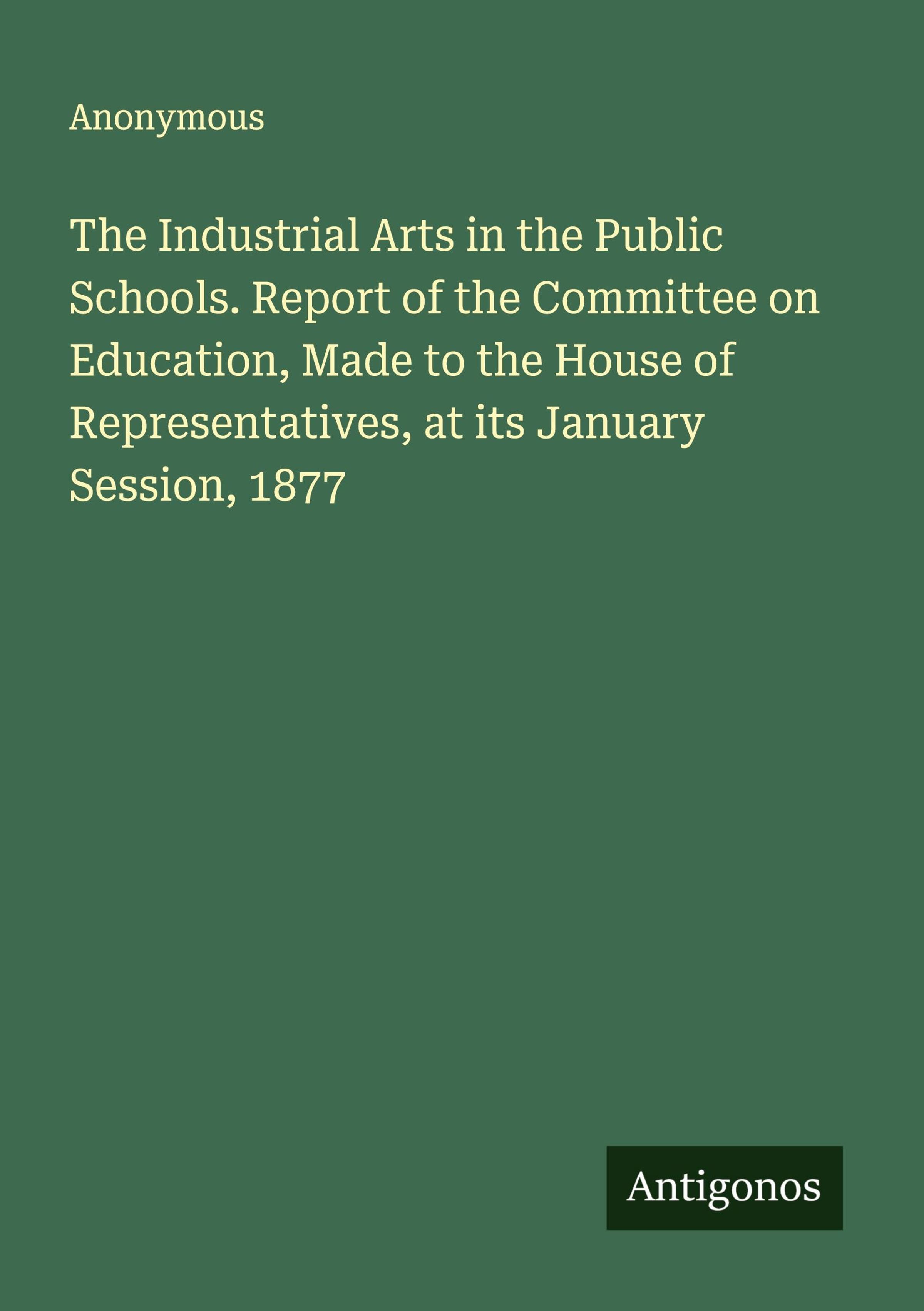 The Industrial Arts in the Public Schools. Report of the Committee on Education, Made to the House of Representatives, at its January Session, 1877
