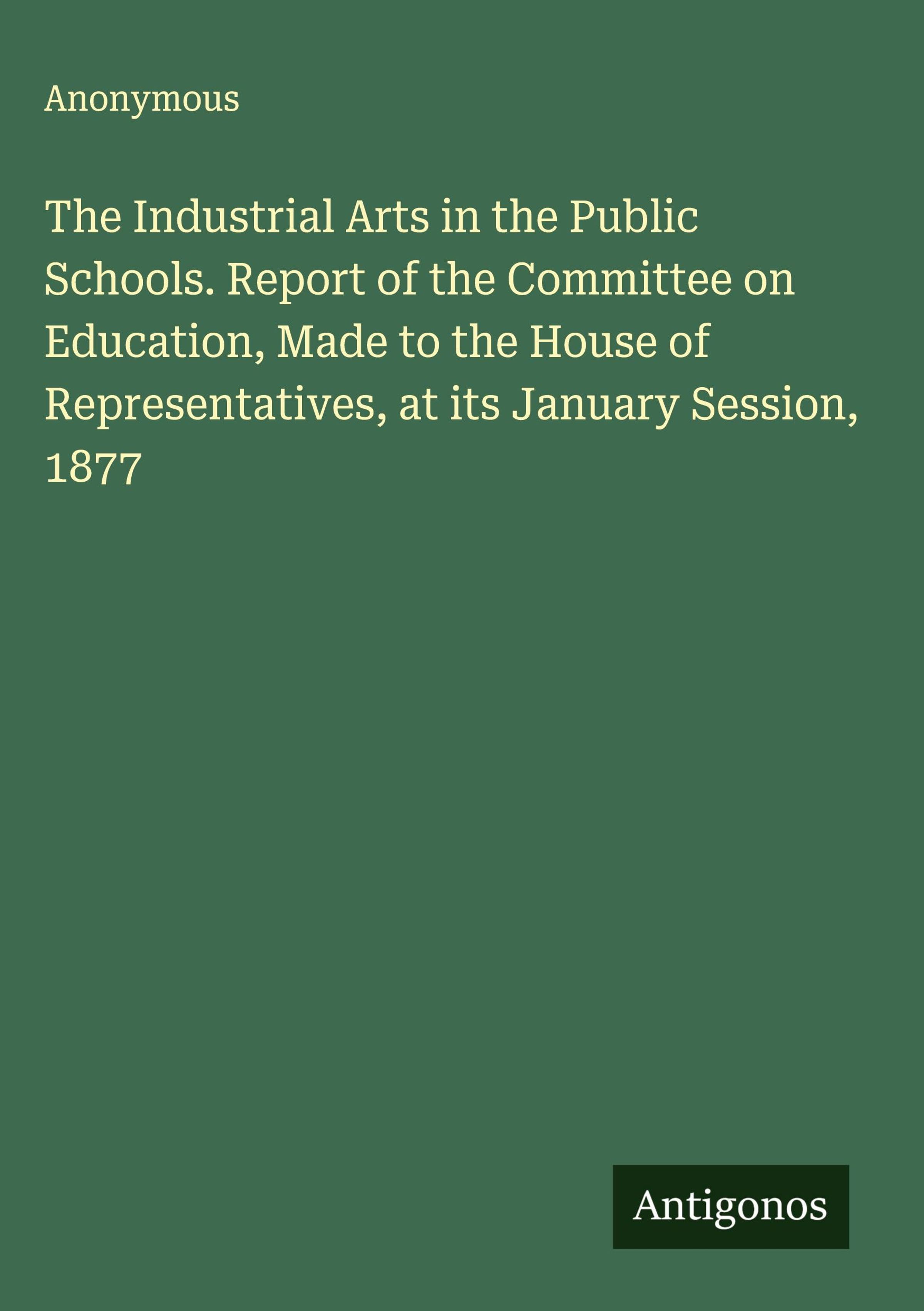 The Industrial Arts in the Public Schools. Report of the Committee on Education, Made to the House of Representatives, at its January Session, 1877