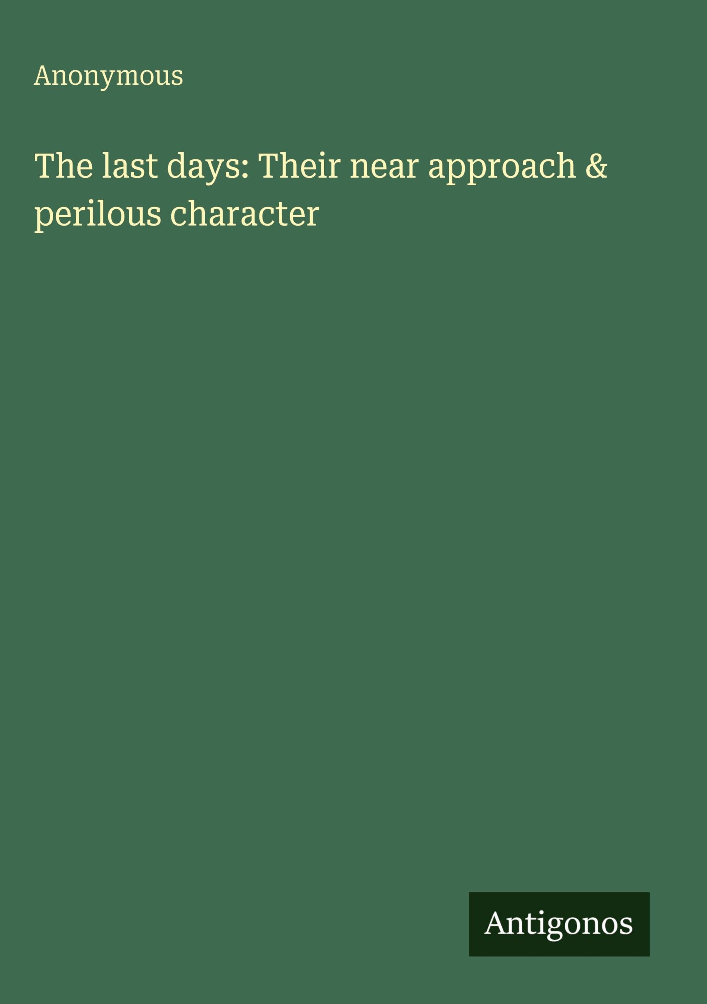 Anonymous: The last days: Their near approach & perilous character, Gebunden