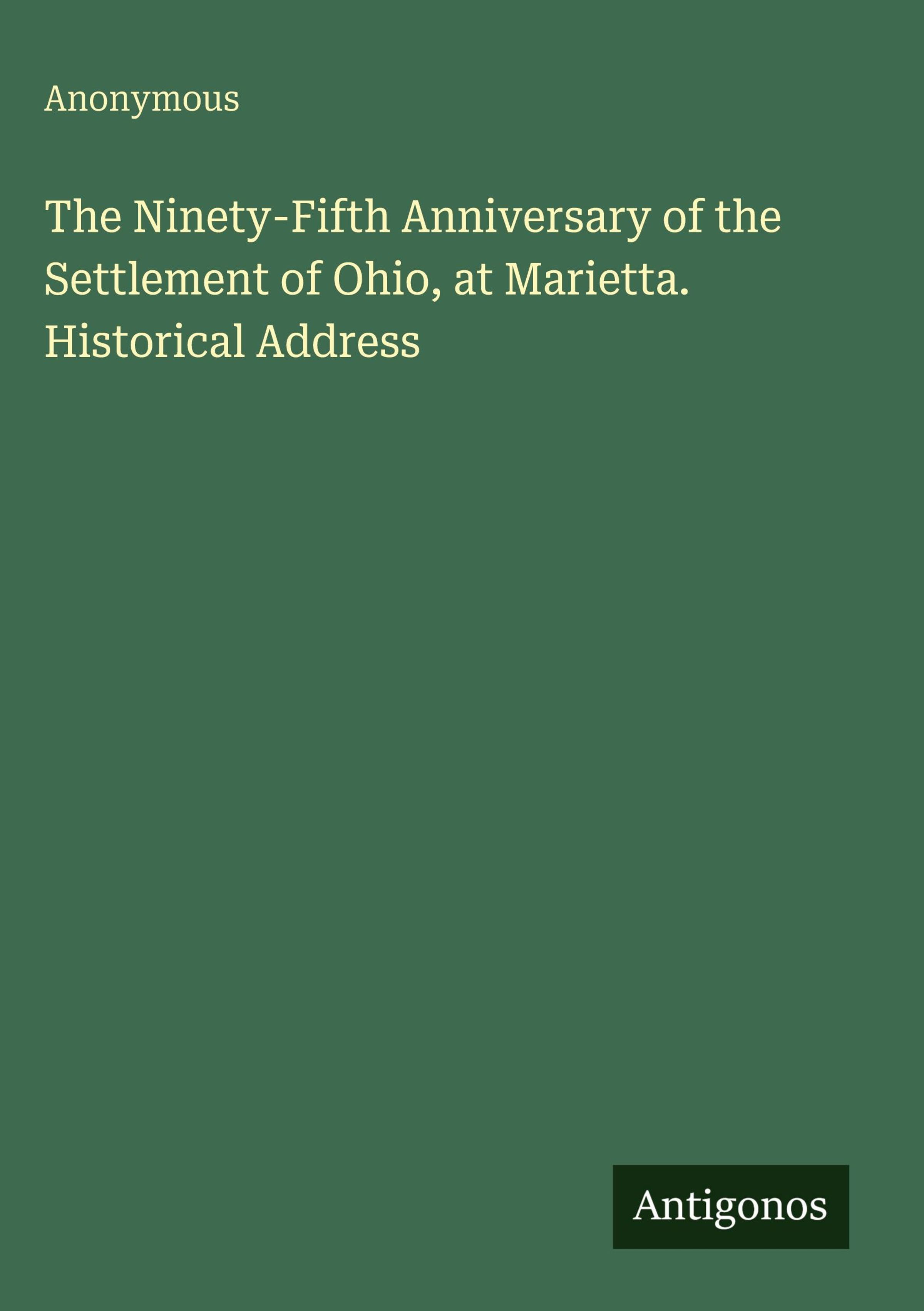 Anonymous: The Ninety-Fifth Anniversary of the Settlement of Ohio, at Marietta. Historical Address, Gebunden