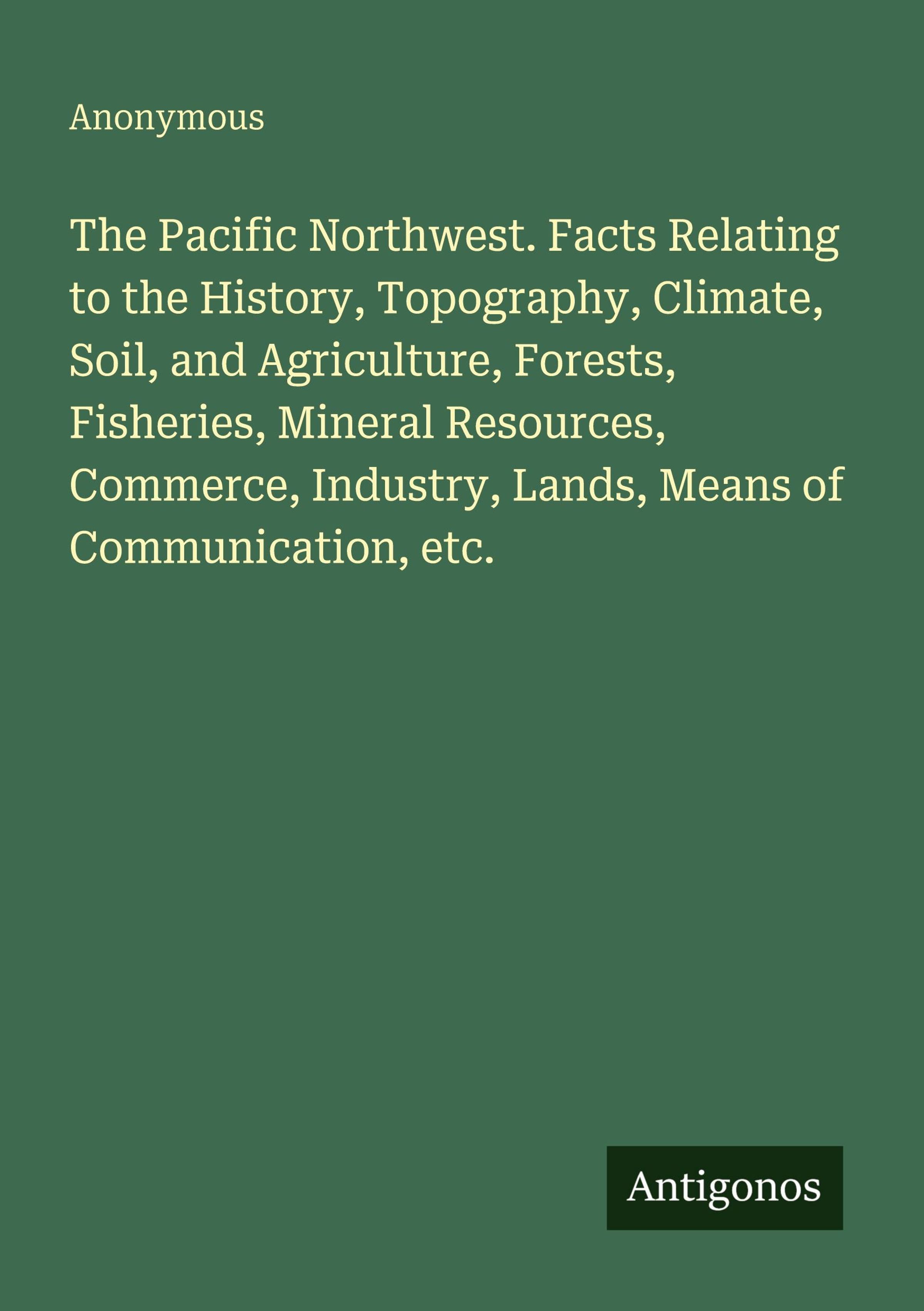 Anonymous: The Pacific Northwest. Facts Relating to the History, Topography, Climate, Soil, and Agriculture,..., Kartoniert / Broschiert