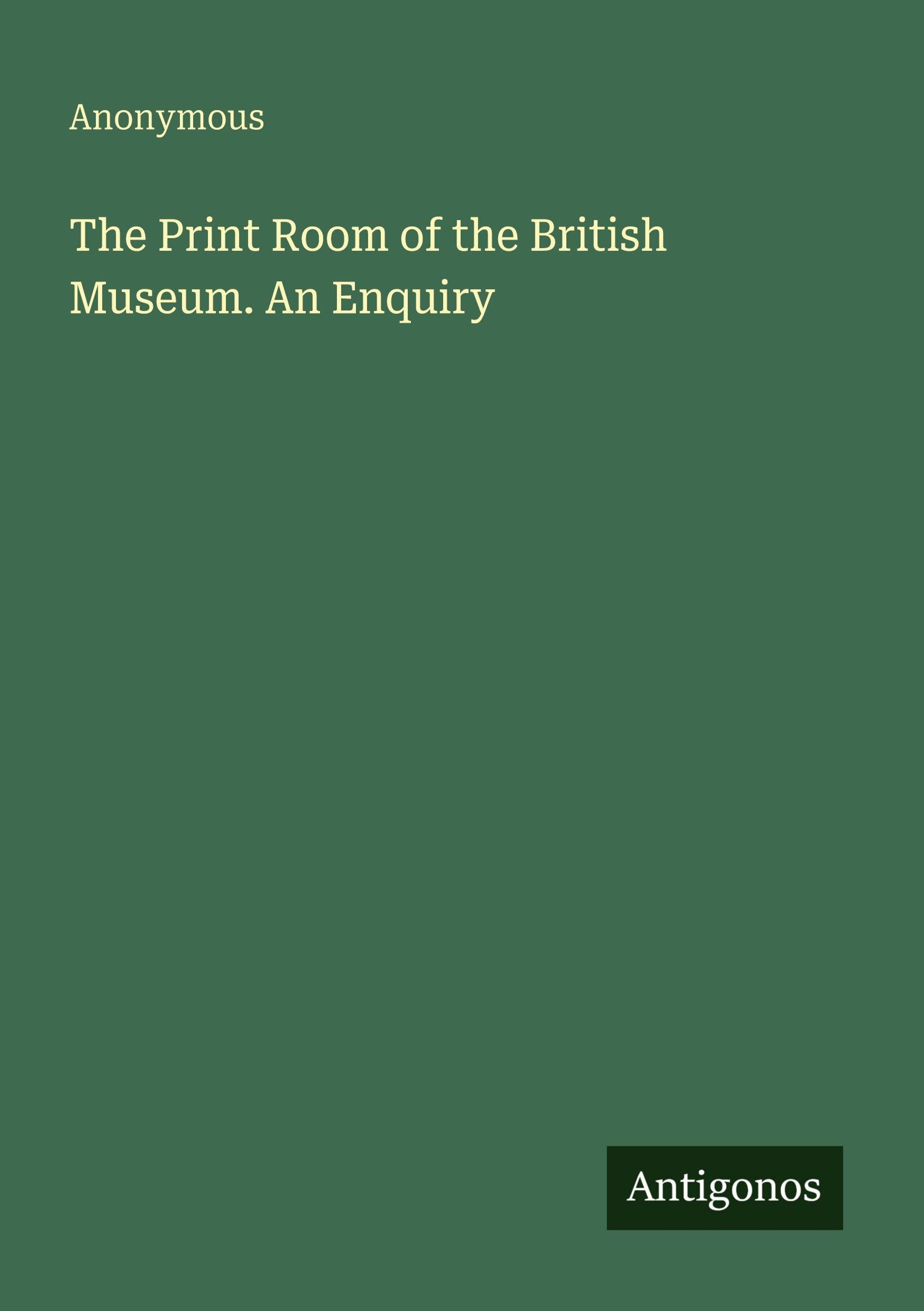 The Print Room of the British Museum. An Enquiry
