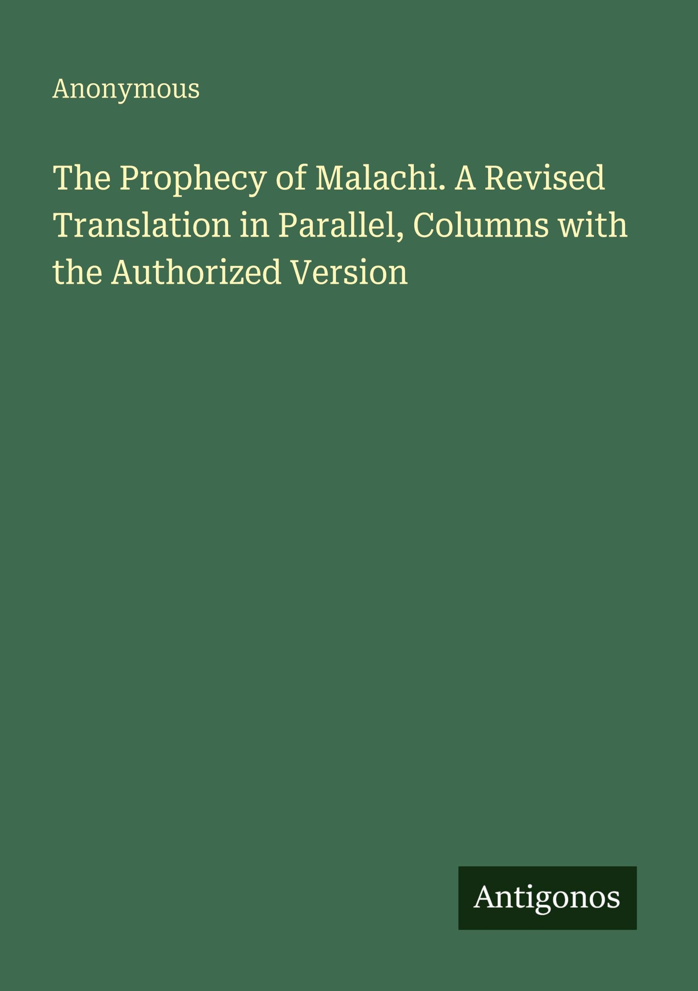 The Prophecy of Malachi. A Revised Translation in Parallel, Columns with the Authorized Version