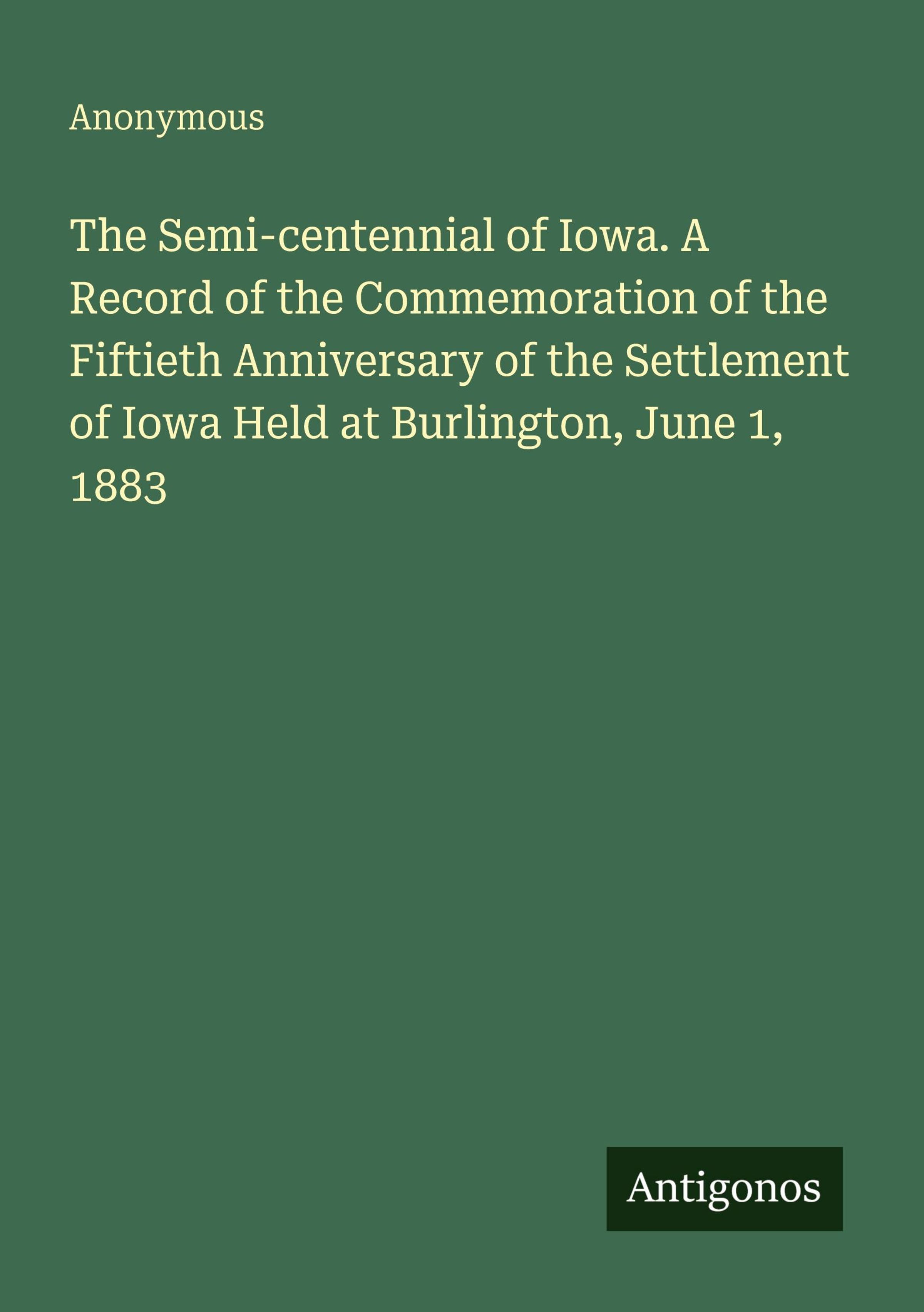 The Semi-centennial of Iowa. A Record of the Commemoration of the Fiftieth Anniversary of the Settlement of Iowa Held at Burlington, June 1, 1883
